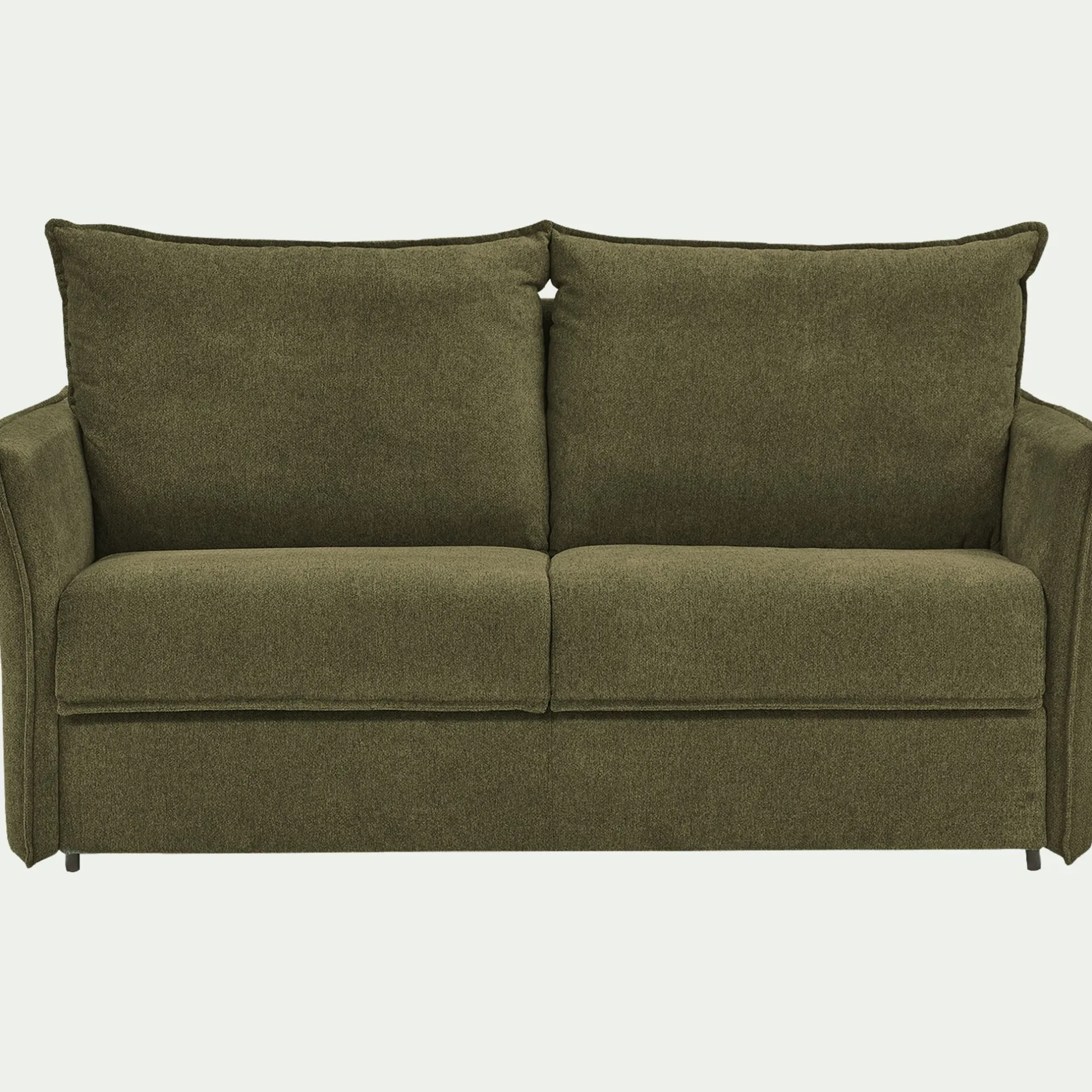 Le canapé Moya offre un soutien optimal adapté à chaque partie du corps. Ce canapé 4 places convertible à la fabrication italienne, confectionné à partir du savoir faire local, vous permet de vous détendre dans une pièce hautement qualitative. Le soir, dépliez votre canapé et transformez-le en un lit au couchage 160×195 cm d’une densité de 35kg/m3 qui vous permettra d’accueillir famille et amis. Très confortable, ce canapé peut servir de couchage quotidien. Son mécanisme métallique vous permet de le déplier en quelques secondes sans enlever ses coussins. Ce canapé en tissu, avec sa couleur vert cèdre et son liseré décoratif, apportera de l’élégance à votre salon.