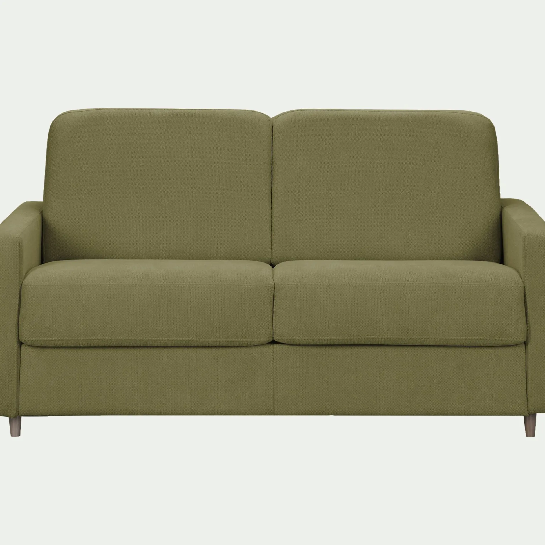Le canapé Gaya se dévoile dans un format 4 places, généreux et accueillant. Conçu en Italie avec un savoir-faire reconnu, il associe élégance contemporaine et praticité. Son allure sobre cache un véritable couchage 160×195 cm, pensé pour un usage quotidien. Le matelas, d’une densité de 25 kg/m³, offre un bon maintien nuit après nuit. Grâce à un mécanisme express, le lit se déplie en un instant, sans retirer les coussins. Un canapé convertible spacieux et raffiné, idéal pour conjuguer style et confort au quotidien. Dans notre coloris vert cèdre, ce canapé en tissu est un meuble coloré qui participe à un espace de vie agréable.
