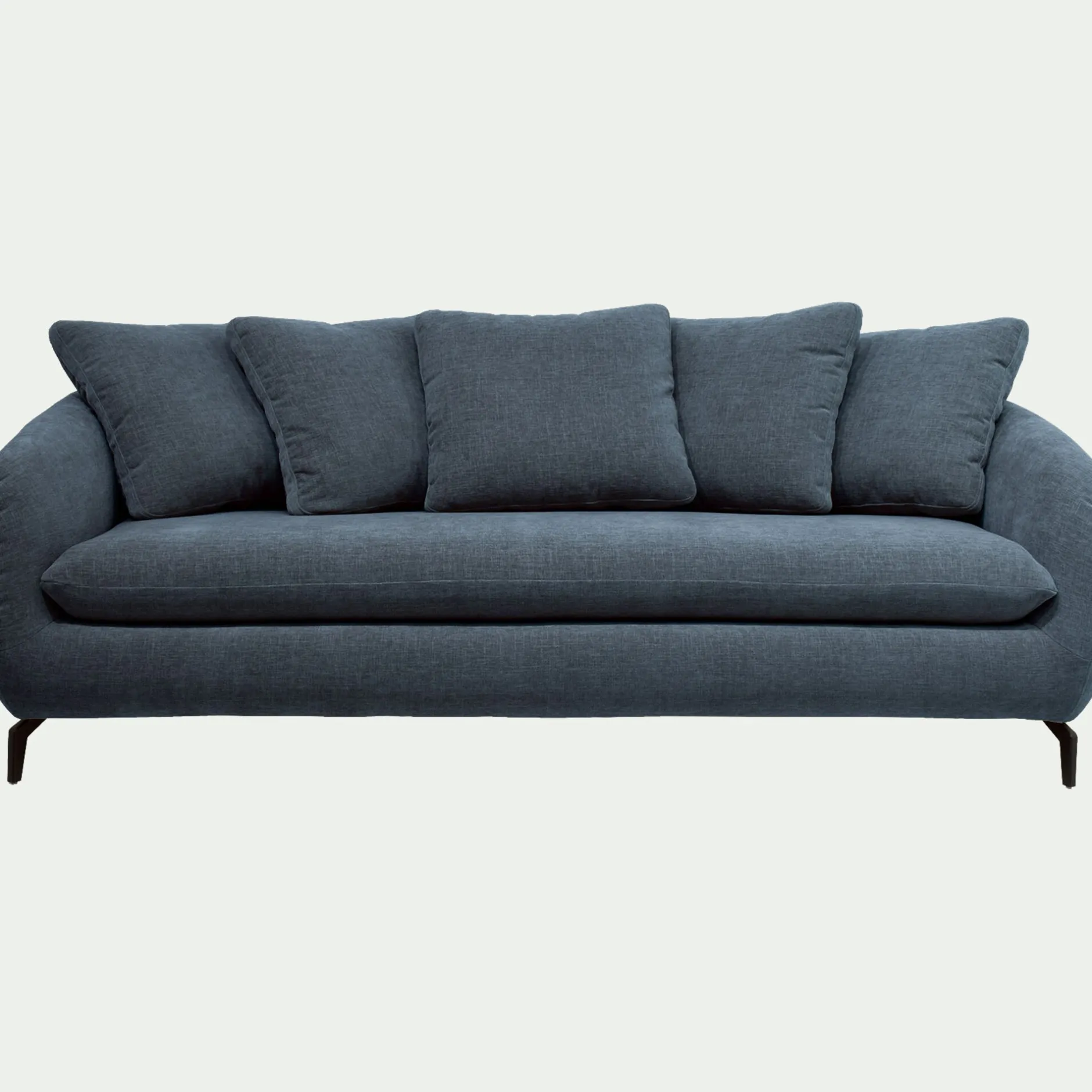 Un joli canapé fixe en tissu pour profiter agréablement de votre salon. Un look contemporain et accueillant, sublimé par un piétement original en acier noir. Vous apprécierez la forme du dossier et des accoudoirs qui vous offrent un maintien optimal de votre dos pour un confort d’assise exceptionnel. Un canapé fabriqué en France, dans des ateliers proches de la ville de Bourge, qui incarne l’excellence du savoir-faire français. Un coloris bleu qui apporte une note lumineuse et chaleureuse à votre décoration de salon.
