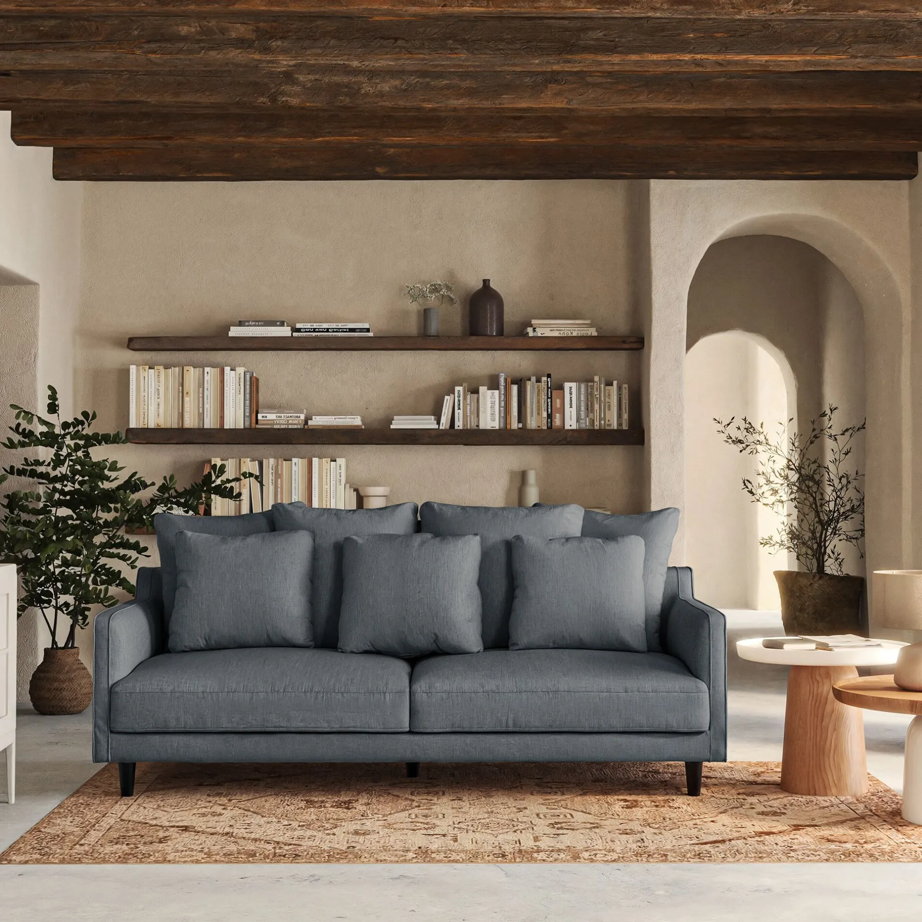 Fabriqué à la main par des passionnés italiens avec une tradition ancestrale dans le domaine du siège et de la tapisserie, ce canapé saura séduire les amateurs de déco. LENITA est une remarquable réinterprétation moderne d’un canapé, inspiré de l’époque somptueuse du Second Empire. Ce canapé fixe de 4 places en tissu mixte, avec sa couleur gris ardoise, est une façon idéale de décorer son salon d’une pièce raffinée. Installez-vous confortablement dans ce canapé moelleux, garni de plumes d’oies et venez vous détendre pour des moments de pur bien-être. Sa ligne, ses courbes, la préciosité de la matière veloutée inspirent le raffinement. Les multiples coussins repositionnables vous donneront le juste confort à tout moment de la journée. Son assise profonde et généreuse invite à la paresse. Il sera incontestablement la pièce qui vous fera passer de très bons moments cocooning.