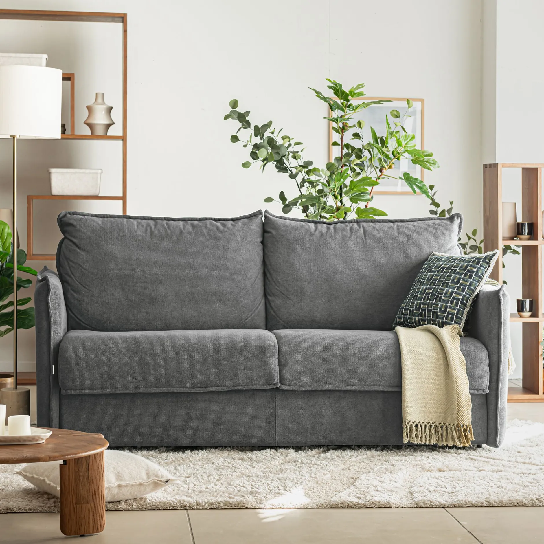 Le canapé Moya offre un soutien optimal adapté à chaque partie du corps. Ce canapé 4 places convertible à la fabrication italienne, confectionné à partir du savoir faire local, vous permet de vous détendre dans une pièce hautement qualitative. Le soir, dépliez votre canapé et transformez-le en un lit au couchage 160×195 cm d’une densité de 35kg/m3 qui vous permettra d’accueillir famille et amis. Très confortable, ce canapé peut servir de couchage quotidien. Son mécanisme métallique vous permet de le déplier en quelques secondes sans enlever ses coussins. Ce canapé en tissu, avec sa couleur gris restanque et son liseré décoratif, apportera de l’élégance à votre salon.