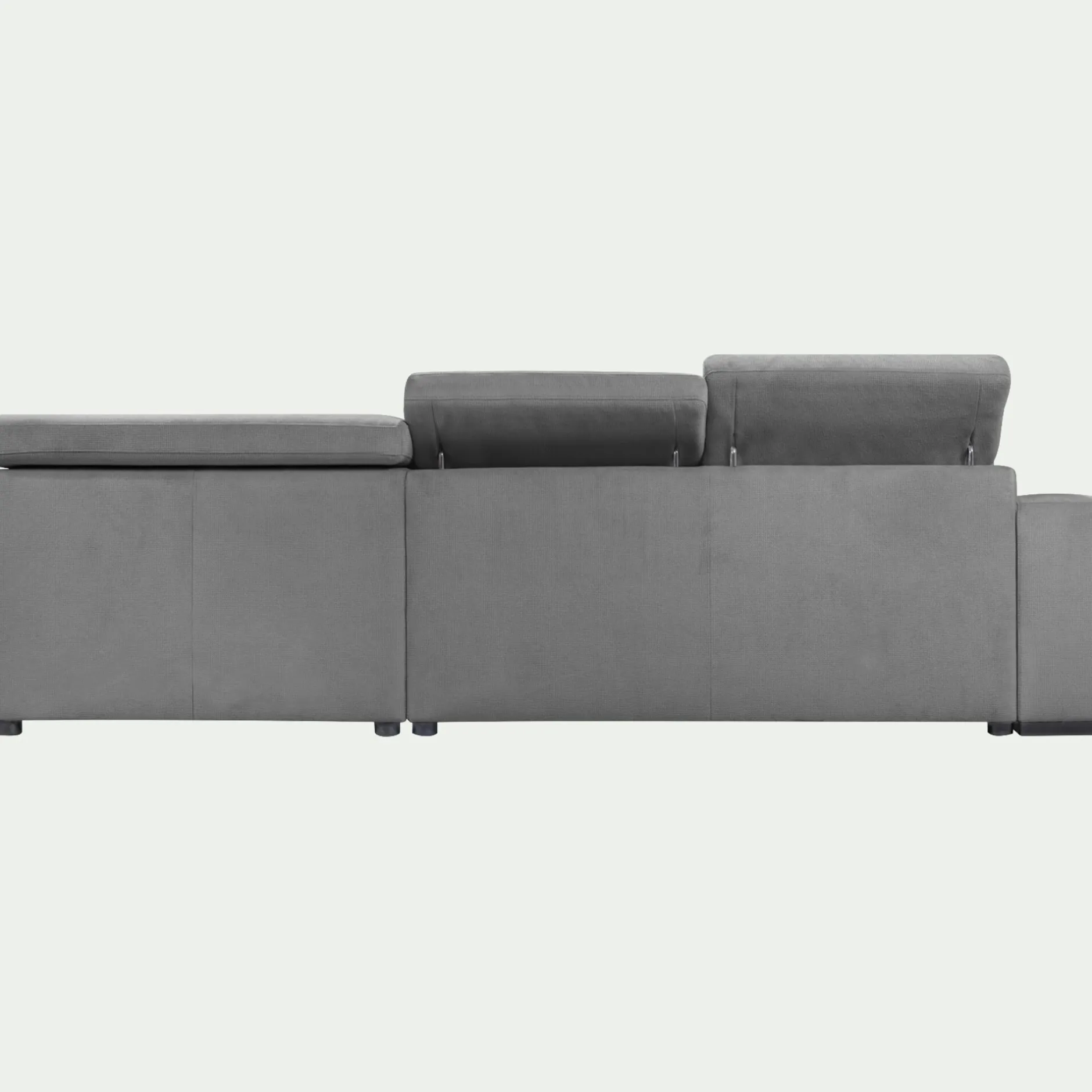 Un superbe canapé d’angle droit en tissu d’une couleur gris, idéal pour un grand salon. Ce canapé vous offre un espace détente spacieux et confortable avec son assise capitonnée et ses têtières relevables qui accompagneront tous vos mouvements. Convertible, il met à votre disposition un couchage d’appoint de 130×200 cm avec un matelas de 10 cm d’épaisseur qui se déploie aisément. Pratique et astucieux grâce à son coffre, ce grand canapé allie fonctionnalité, style et confort.