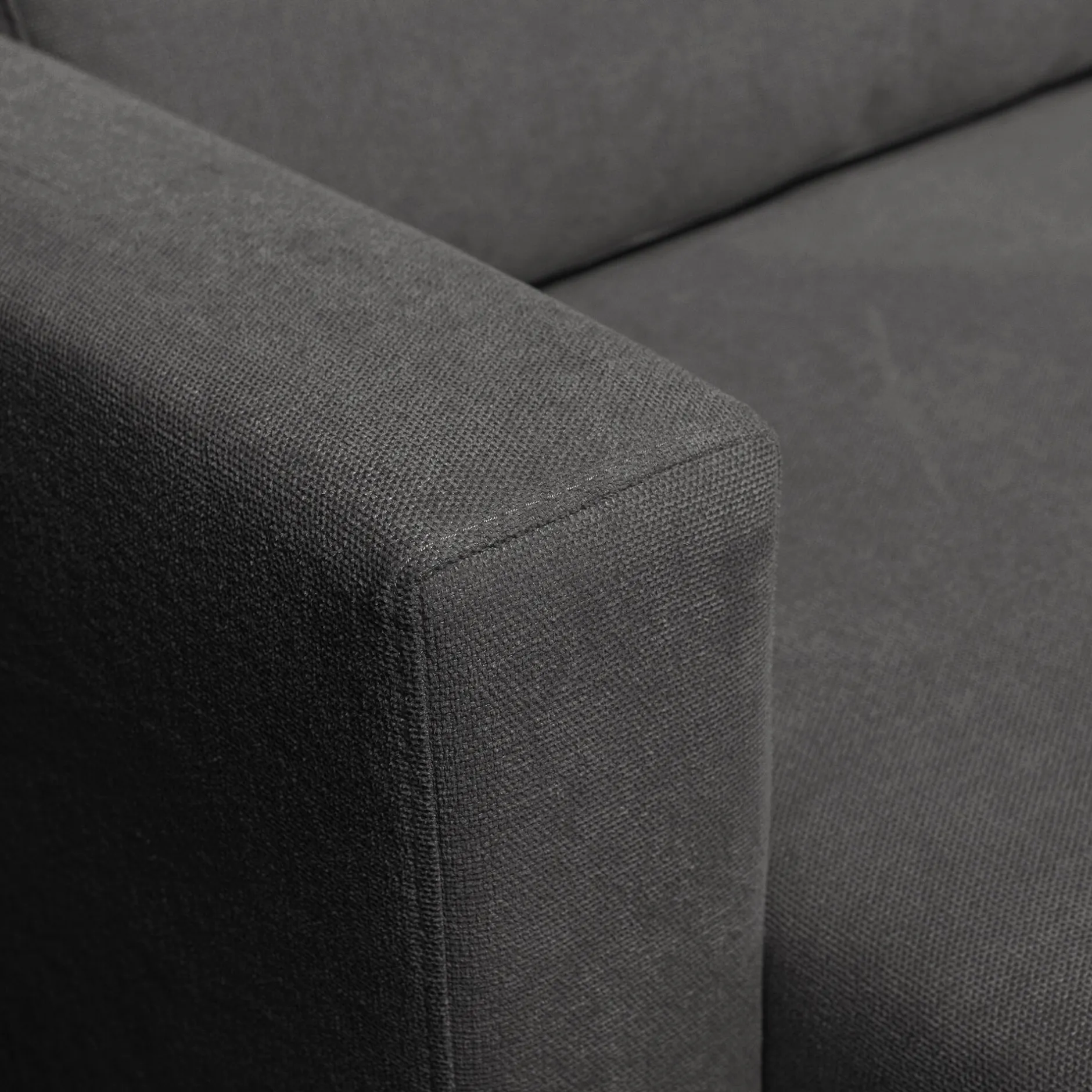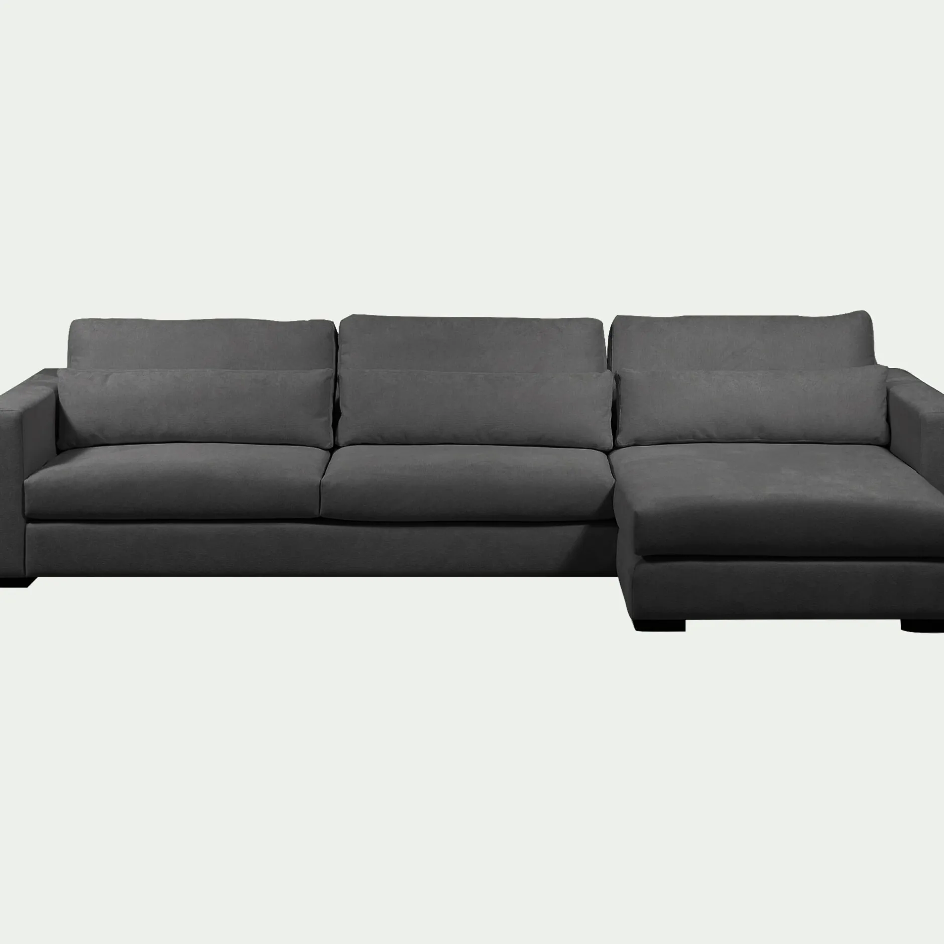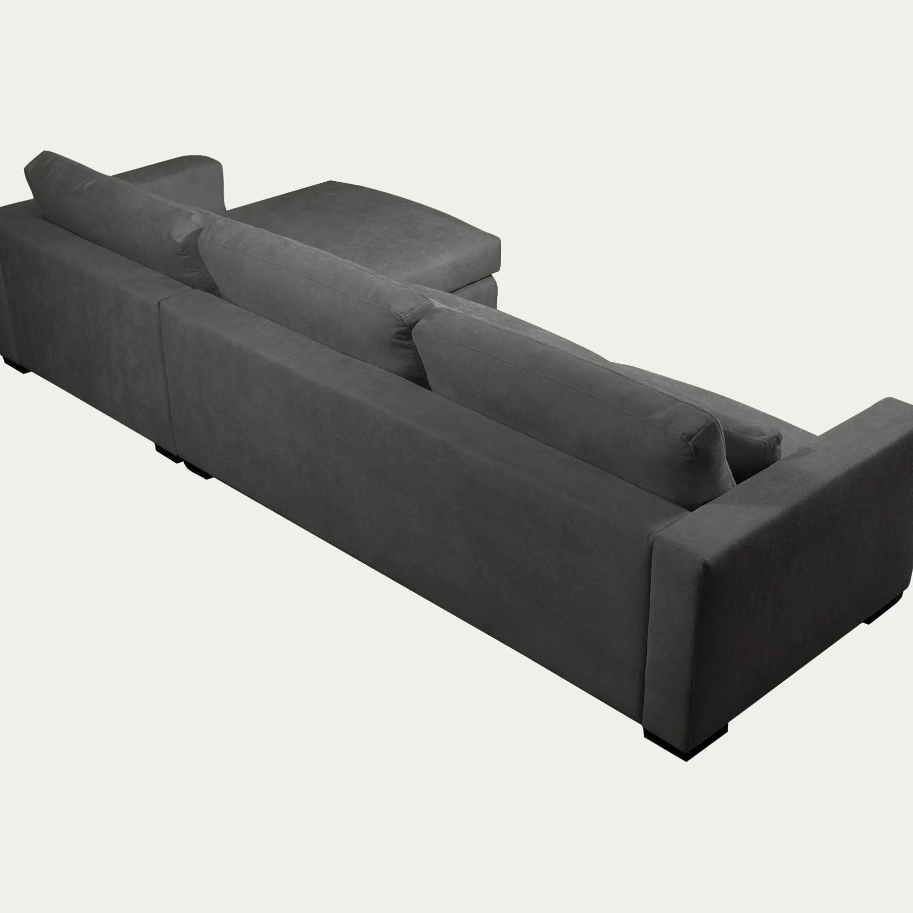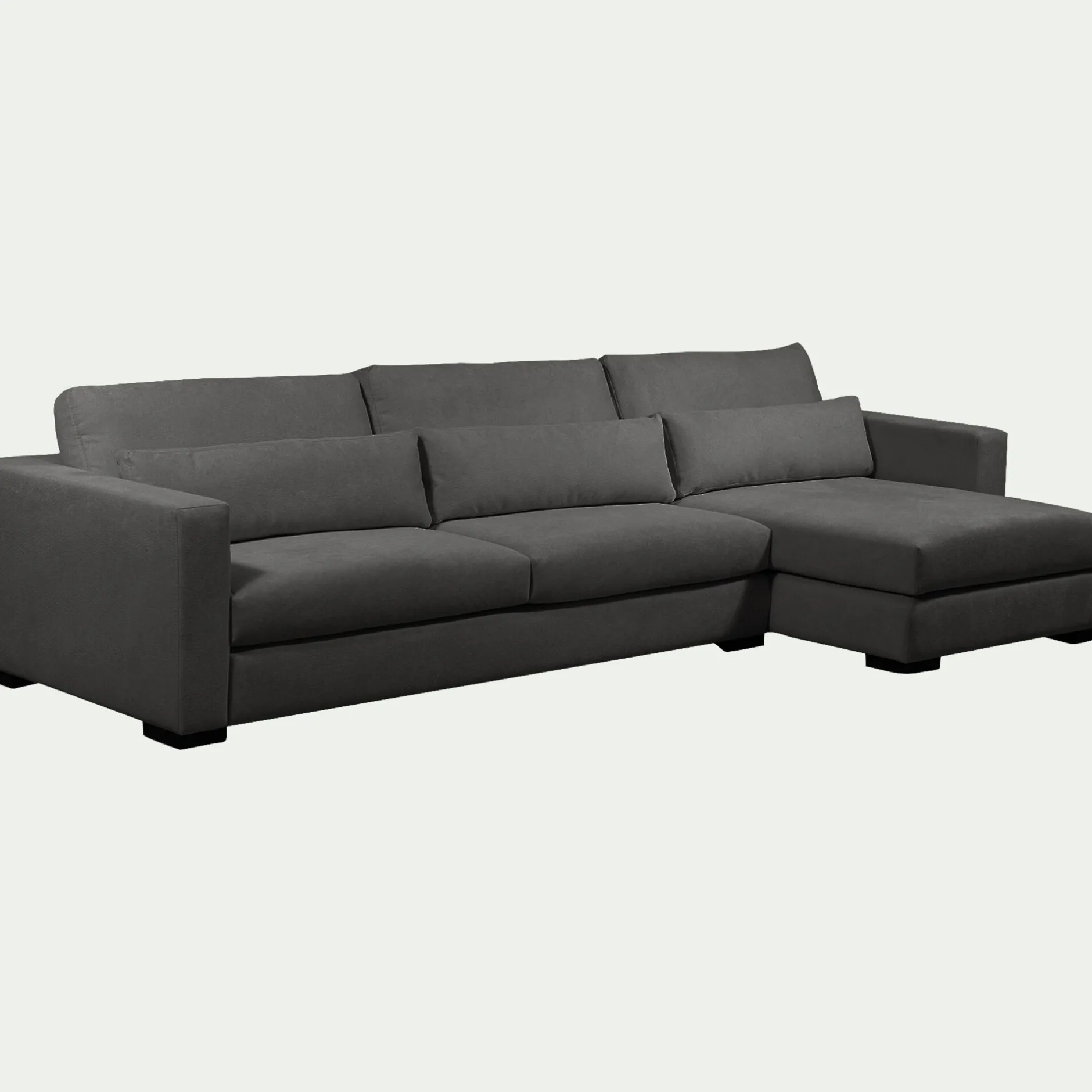 Spacieux et raffiné, le canapé d’angle Batis avec angle à droite transforme le salon en un espace accueillant et élégant. Sa chaise longue offre un espace idéal pour s’allonger et savourer un véritable instant de détente. Revêtu d’un tissu natté résistant, il allie esthétique intemporelle et durabilité. Son coloris gris anthracite, contemporain et polyvalent, apporte du caractère tout en restant chaleureux. Conçu pour durer, ce canapé fixe repose sur une structure en bois massif, garantissant solidité et stabilité. Il s’impose comme l’élément central du séjour, invitant au partage et à la relaxation.