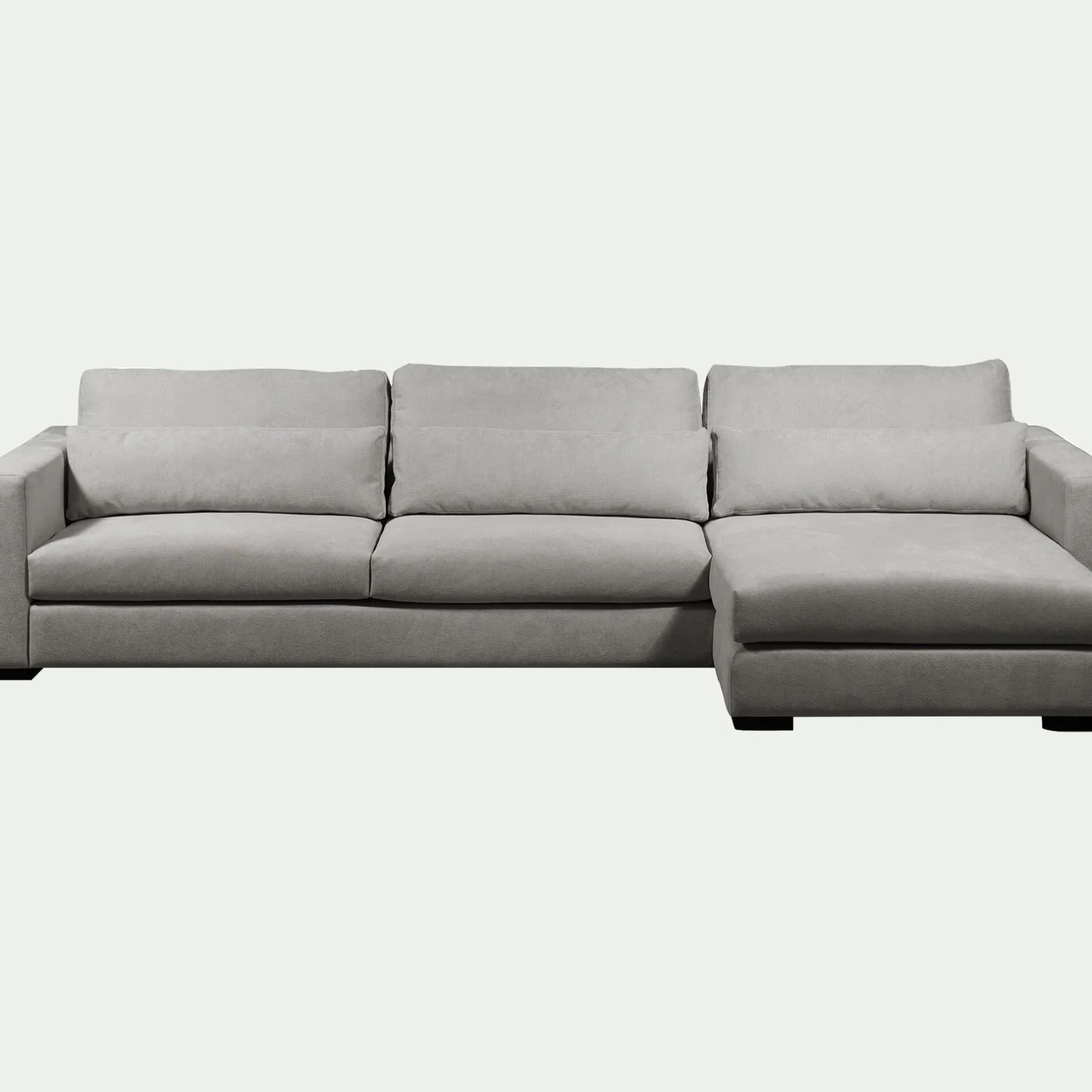 Spacieux et raffiné, le canapé d’angle Batis avec angle à droite transforme le salon en un espace accueillant et élégant. Sa chaise longue offre un espace idéal pour s’allonger et savourer un véritable instant de détente. Revêtu d’un tissu natté résistant, il allie esthétique intemporelle et durabilité. Son coloris gris clair se marie à différents styles de décoration et d’accessoires, comme un plaid et des coussins. Conçu pour durer, ce canapé fixe repose sur une structure en bois massif, garantissant solidité et stabilité. Il s’impose comme l’élément central du séjour, invitant au partage et à la relaxation.