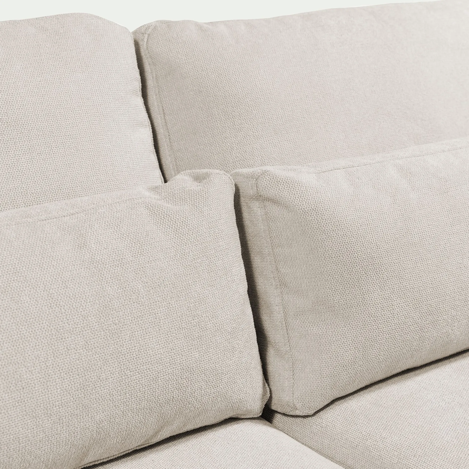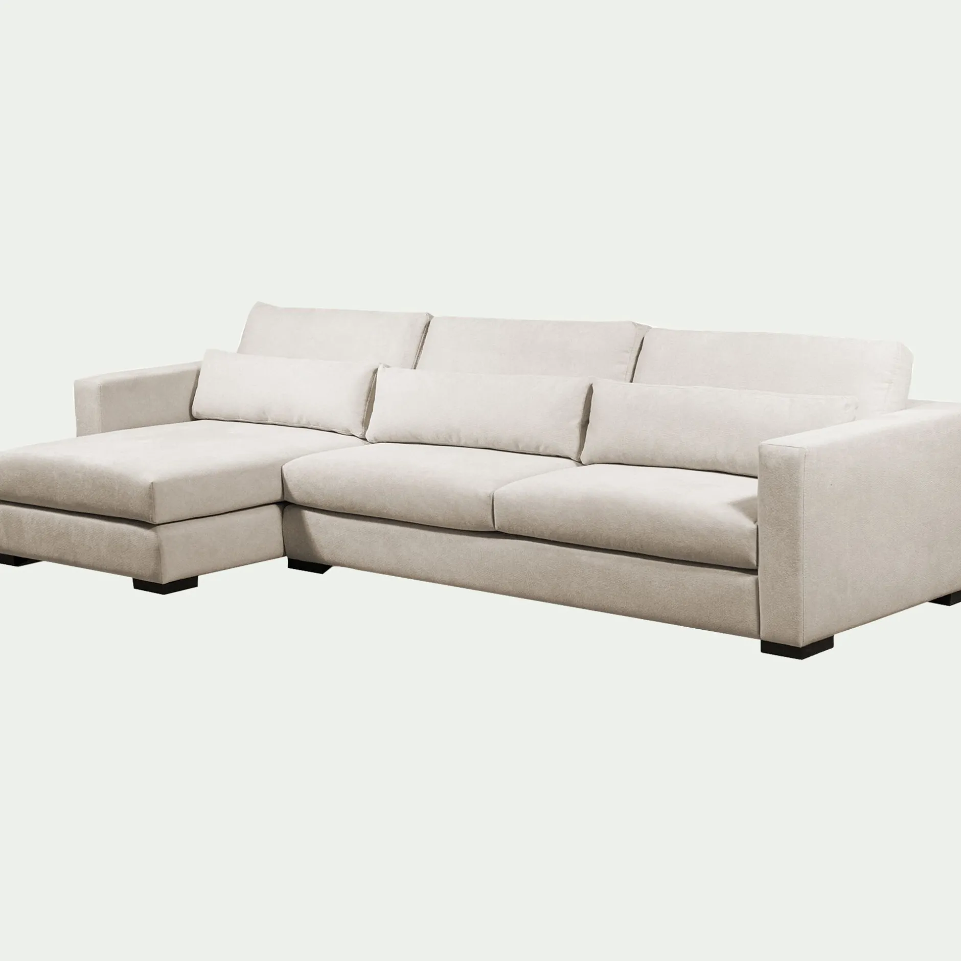 Le canapé fixe Batis incarne l’alliance parfaite entre confort et élégance. Sa structure solide en bois massif assure une stabilité et une durabilité exceptionnelles. Revêtu d’un tissu doux beige, il offre une texture douce et un aspect cocooning. Les coussins déhoussables facilitent l’entretien et permettent de maintenir la fraîcheur du canapé. Avec ses six places spacieuses, il offre un espace généreux pour se détendre en toute tranquillité ou pour accueillir confortablement vos invités. Ce canapé grand angle en tissu allie praticité, confort et esthétique, ajoutant une touche de raffinement à votre salon.