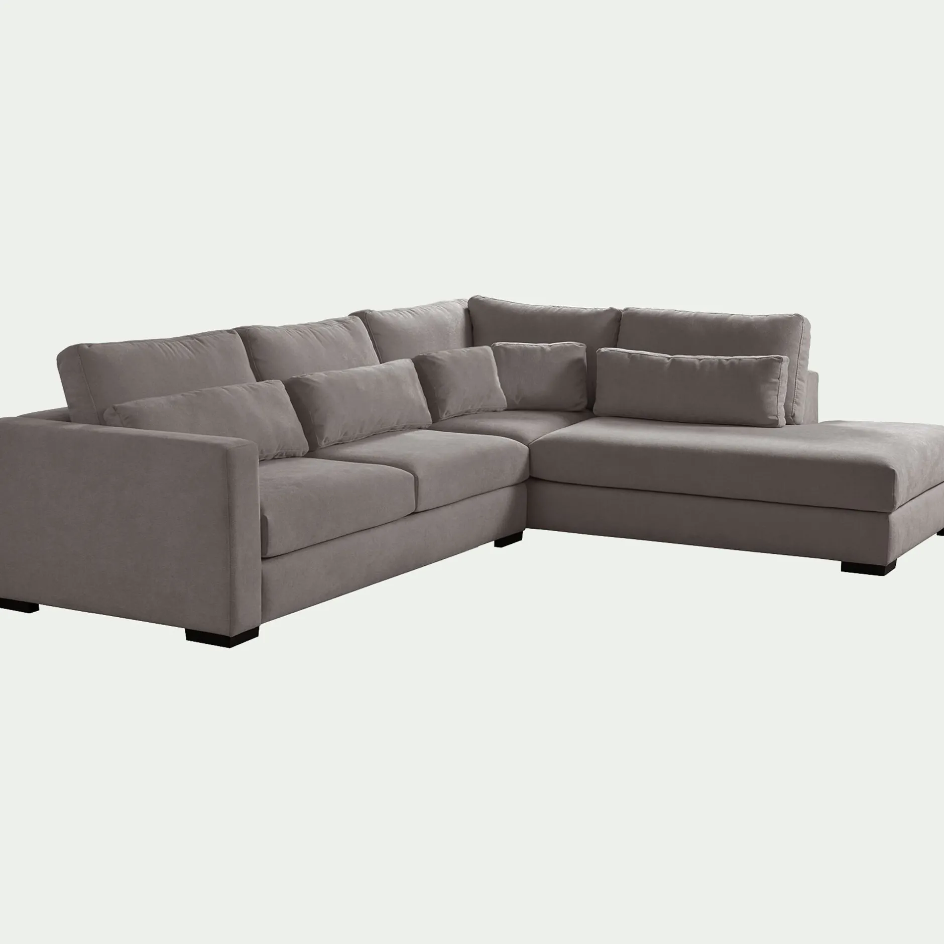 Ce canapé d’angle présente une méridienne à droite : un petit angle parfait pour créer un coin cocooning. Grand, ce canapé permet d’accueillir plusieurs convives ou de s’étendre après une longue journée. Revêtu d’un tissu gris contemporain et intemporel, ce canapé fixe charme par sa texture douce et son revêtement résistant. Son assise profonde repose sur une structure en bois massif et des ressorts, assurant un confort durable et un soutien équilibré. Conçu pour le quotidien, ses coussins de dossier et d’assise sont entièrement déhoussables, facilitant l’entretien. Imposant et élégant, ce grand canapé gris clair apporte du caractère à la pièce et devient le compagnon idéal des moments de convivialité et de relaxation.