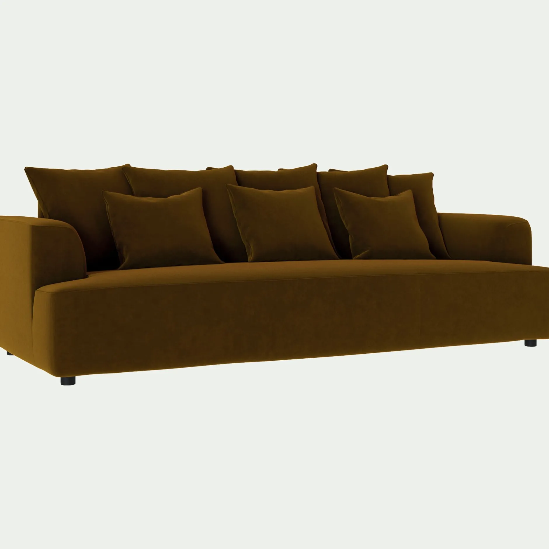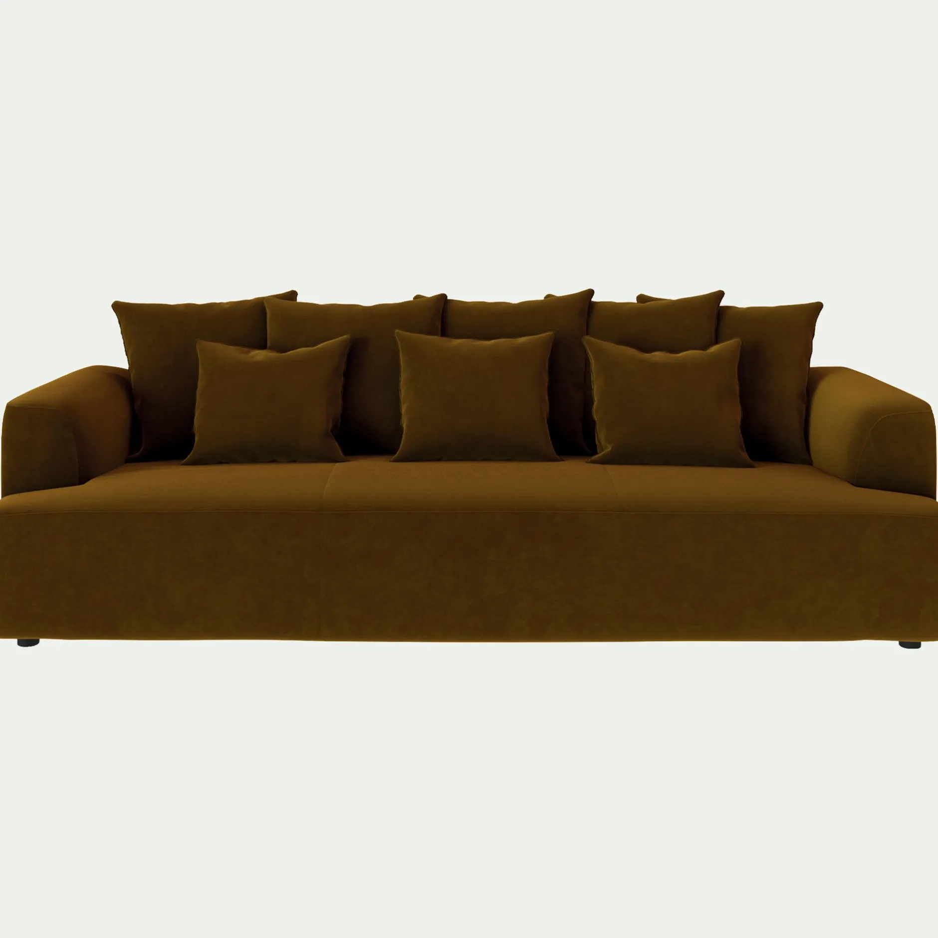 Un élégant canapé bronze pour illuminer votre salon. Un confort ferme enveloppé par un tissu des plus doux pour une assise très confortable. Un canapé chaleureux qui vous invite à la détente. Un superbe canapé fixe droit en tissu qui conviendra parfaitement pour être la pièce maîtresse de votre salon. Idéal pour les grands espaces, ce canapé 5 places opte pour un style épuré et empreint de douceur. Son assise moelleuse et ses accoudoirs larges vous envelopperont pour un agréable confort et vous apprécierez le toucher tout doux de son revêtement. Son coloris sobre et chic sera du plus bel effet et donnera le ton dans votre pièce à vivre. Un canapé de qualité fabriqué en Italie qui saura apporter un réel charme à votre intérieur.