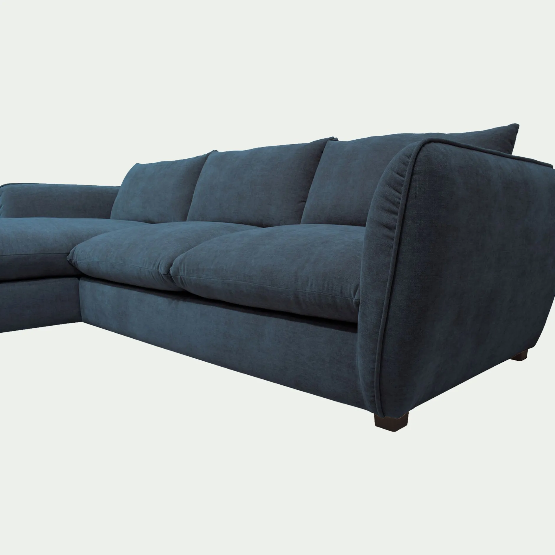 De jour comme de nuit, ce canapé d’angle convertible avec angle à gauche s’adapte à toutes les envies. Avec son tissu bleu, il égaye le salon et lui insuffle une atmosphère conviviale et cosy. Son assise profonde et sa méridienne invitent à la détente, offrant un confort idéal pour les moments de repos ou de convivialité. Son design généreux et cosy en fait une pièce maîtresse qui réchauffe l’espace avec élégance. Et lorsque l’heure du coucher approche, ce canapé d’angle se transforme en couchage occasionnel en un clin d’œil. Grâce à son système express, il suffit de tirer pour dévoiler un sommier avec matelas de 140×190 cm, prêt à accueillir les invités pour la nuit. Plus qu’un simple canapé en tissu, c’est un véritable allié du quotidien, alliant style et fonctionnalité sans compromis.