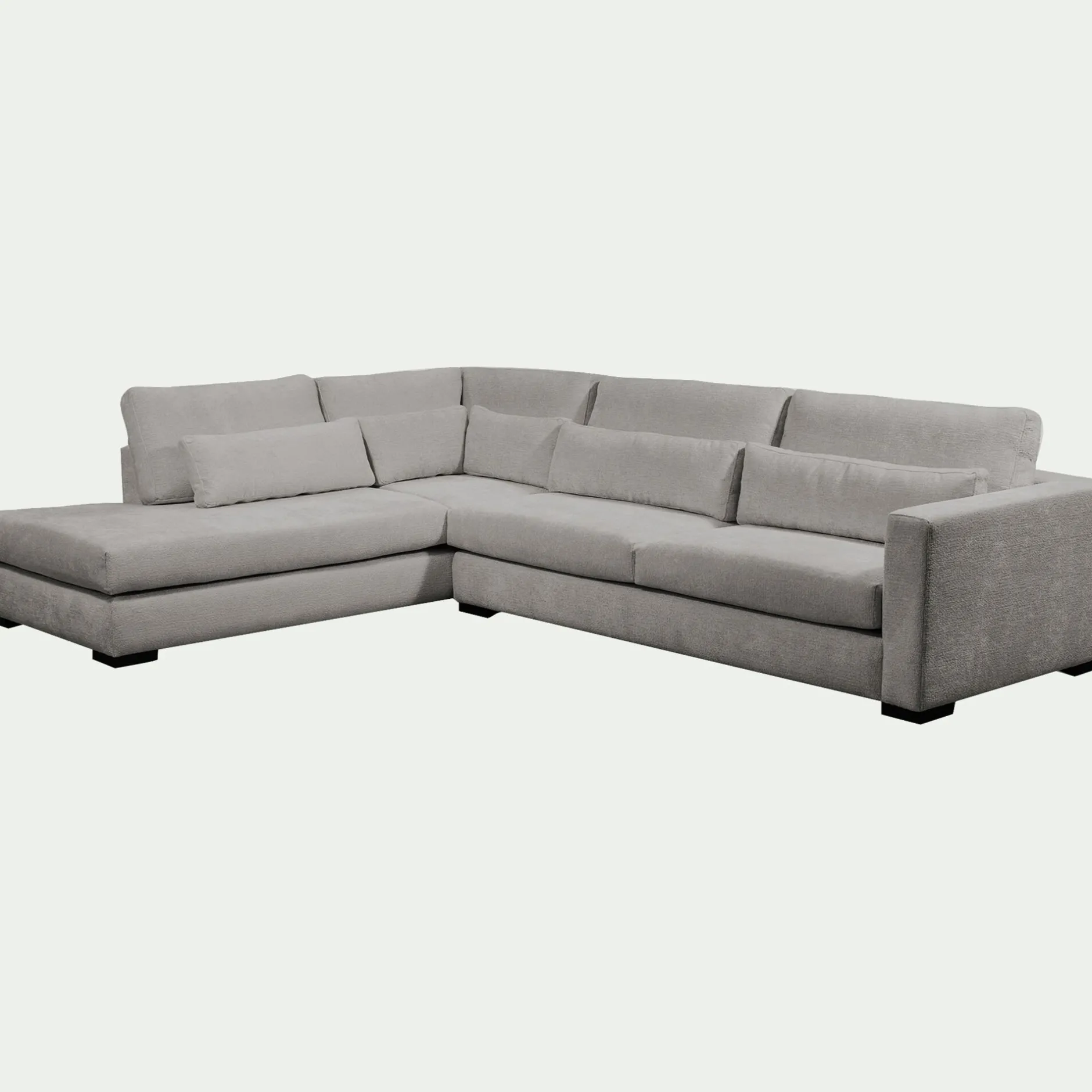 Ce canapé d’angle avec méridienne à gauche fait de votre salon un véritable havre de détente. Son format spacieux permet d’accueillir toute la famille ou de s’étendre confortablement après une longue journée. Habillé d’un tissu gris à la fois contemporain et raffiné, ce canapé fixe charme par sa texture douce et résistante. Son assise profonde repose sur une structure en bois massif et des ressorts, assurant un confort durable et un soutien équilibré. Conçu pour le quotidien, ses coussins de dossier et d’assise sont entièrement déhoussables, facilitant l’entretien. Imposant et élégant, ce grand canapé gris apporte du caractère à la pièce et devient le compagnon idéal des moments de convivialité et de relaxation.