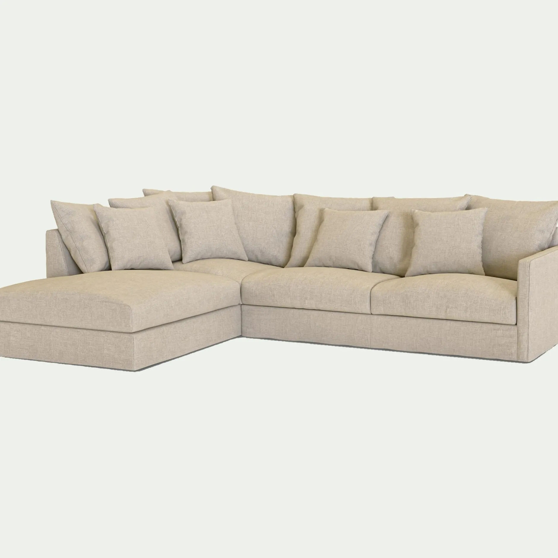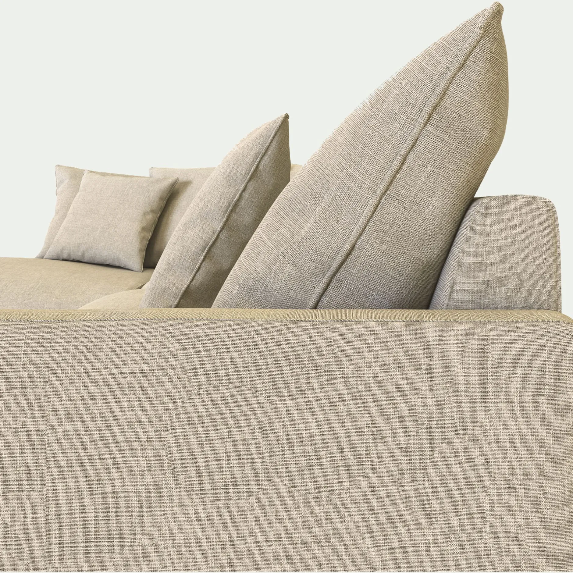 Un joli canapé fixe en tissu mix pour profiter agréablement de votre salon. En effet, ce canapé est composé de lin et de viscose. Un look contemporain et accueillant, sublimé par un piétement original. Vous apprécierez le confort d’assise que vous offrent le dossier et les coussins de ce canapé. Un canapé de qualité fabriqué en Italie. Il arbore un coloris beige alpilles qui apporte une note douce et raffinée à la décoration de votre intérieur.