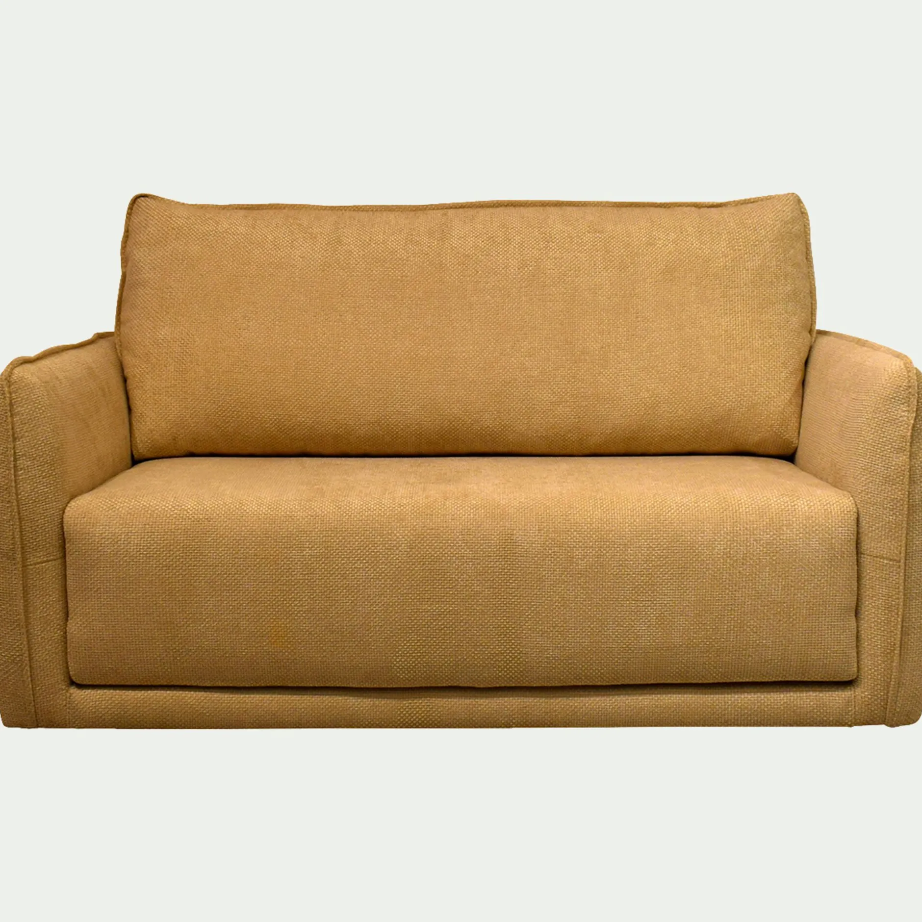 Le canapé convertible Léo est la solution idéale pour les petits espaces. Avec son design compact et contemporain, il s’intègre aussi bien dans un salon que dans un bureau. De jour, il offre une assise confortable comme canapé 2 personnes, avec une vraie structure en bois massif et des accoudoirs fins qui allègent la silhouette. De nuit, il se transforme en un couchage d’appoint grâce à un système d’ouverture rapide et facile. Son revêtement en tissu jaune argan, à la fois soyeux et solide, réchauffe l’espace de son coloris solaire et enjoué. Pratique au quotidien, ses coussins de dos sont déhoussables grâce à une fermeture à glissière. Ce petit canapé convertible est fabriqué en France avec un souci du détail et du confort.