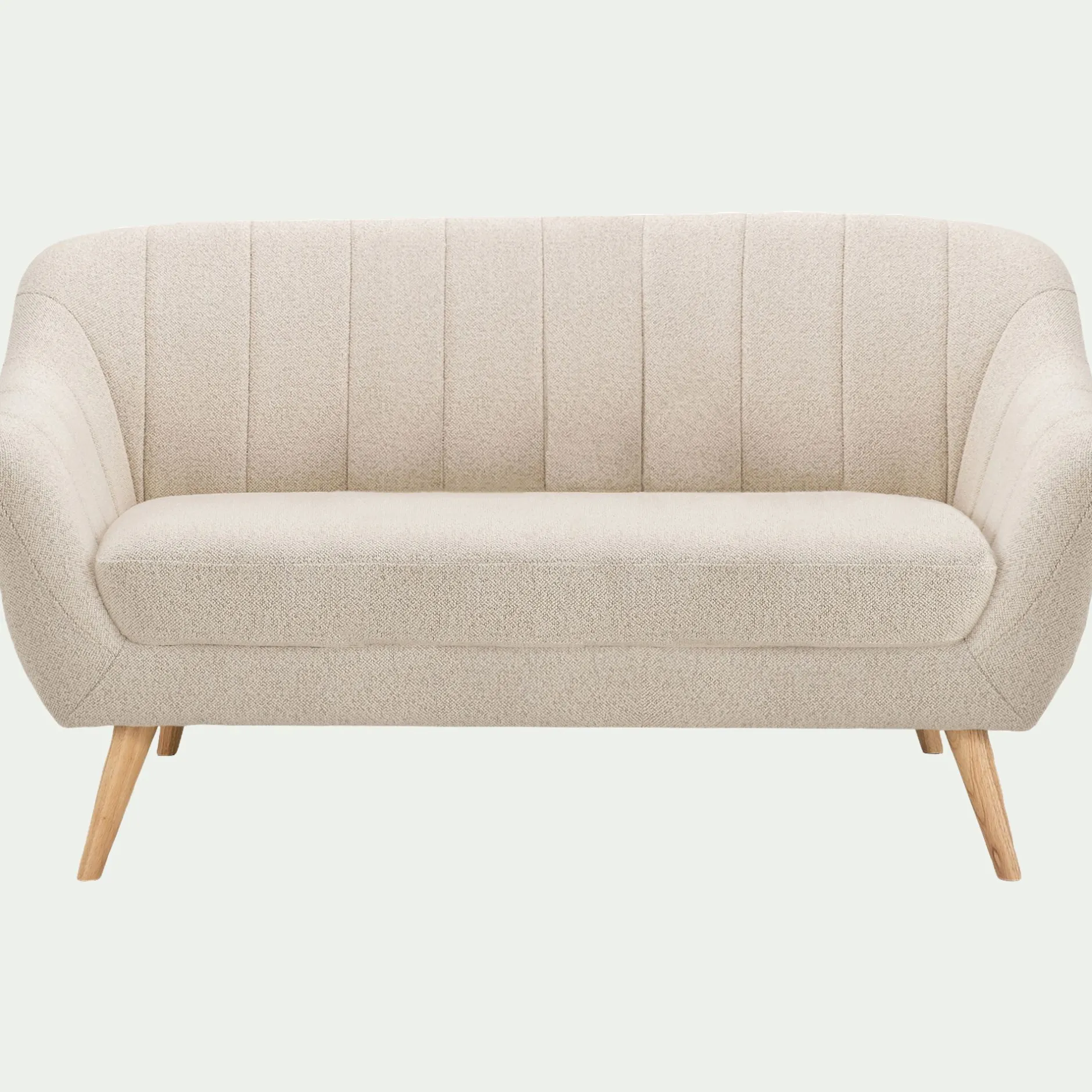 Créez une ambiance élégante avec ce canapé 2 places beige. Avec son assise moelleuse et son dossier matelassé, il offre un excellent confort d’assise. Son coloris beige adoucit votre décoration d’intérieur et apporte une note lumineuse à l’ensemble. Ce canapé en tissu bouclette est souligné par un piètement en hévéa, une essence de bois claire qui couronne le tout d’une touche chaleureuse. Résolument rétro, le design de ce canapé s’inspire d’une coquille Saint-Jacques. Découvrez le reste de la gamme Shell qui se compose de canapés, de poufs et de chaises pour vous offrir un bel ensemble qui saura mettre en valeur votre pièce de vie.
