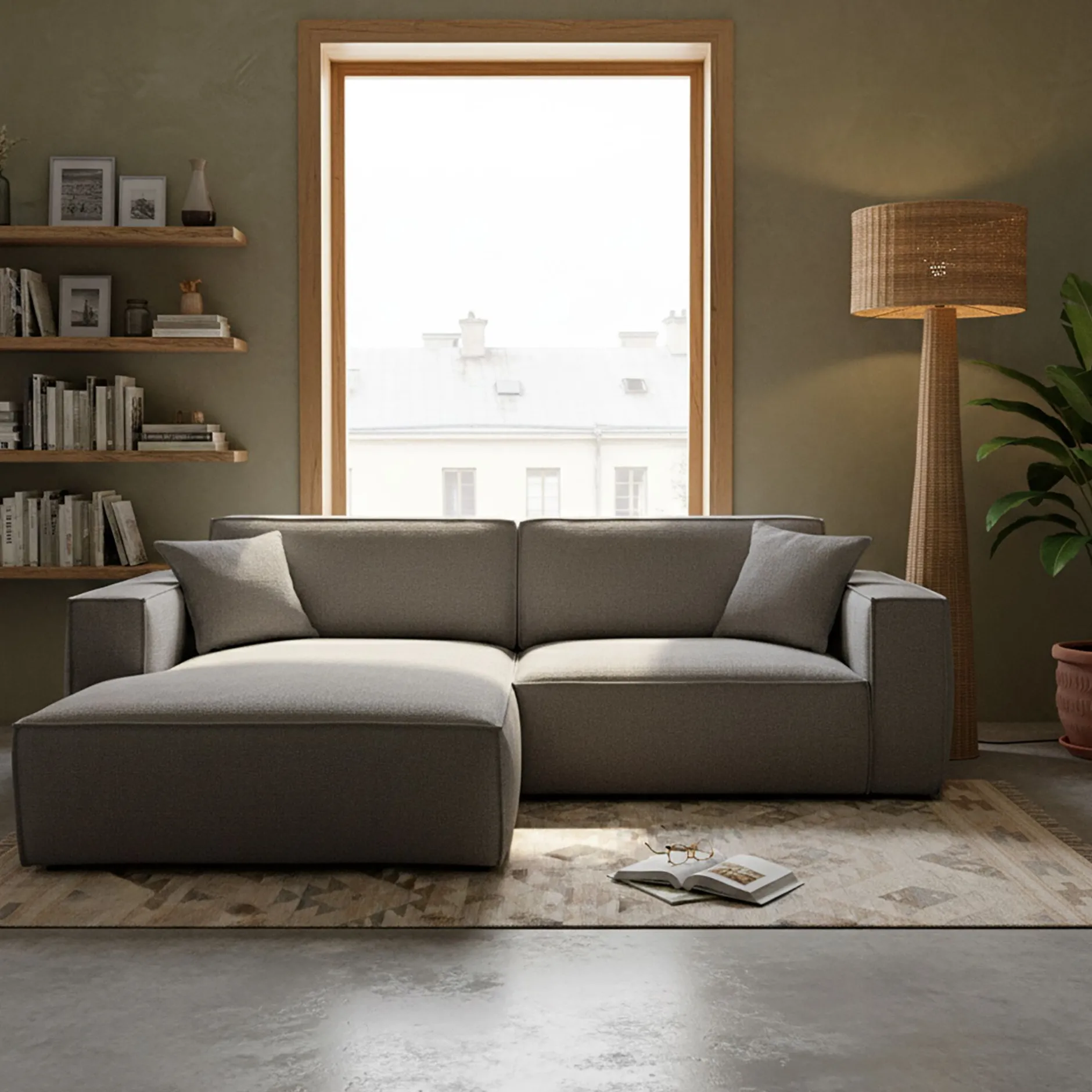 Compact et élégant, le canapé d’angle gauche Kubo est la pièce idéale pour aménager un petit salon sans compromis sur le style et le confort. Ses lignes épurées et son design rectangulaire apportent une touche contemporaine à votre intérieur, tandis que son assise moelleuse invite à la détente. Parfait pour deux personnes, il crée un espace cosy où se retrouver, que ce soit pour un moment de lecture ou un apéritif entre amis. Son revêtement en tissu genesis dans un coloris gris participe à une déco contemporaine et s’adapte facilement à toutes les ambiances. Fabriqué en Ukraine, ce petit canapé fixe allie durabilité et esthétique pour un intérieur raffiné.