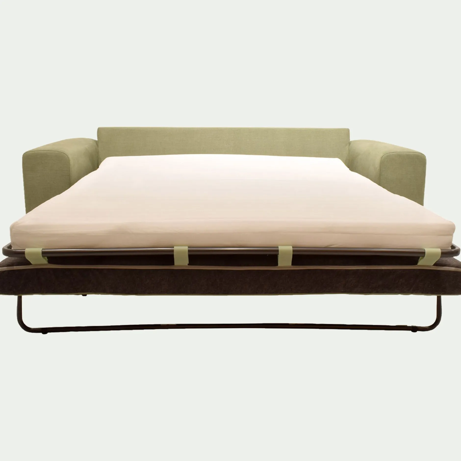 Matelas : mousse polyuréthane Haute Résilience 30kg/m3, épaisseur fini 10cm, recouvert d’un coutil Stretch 92% polyester et 8% nylon avec plateau piqué en ouate 300g/m².