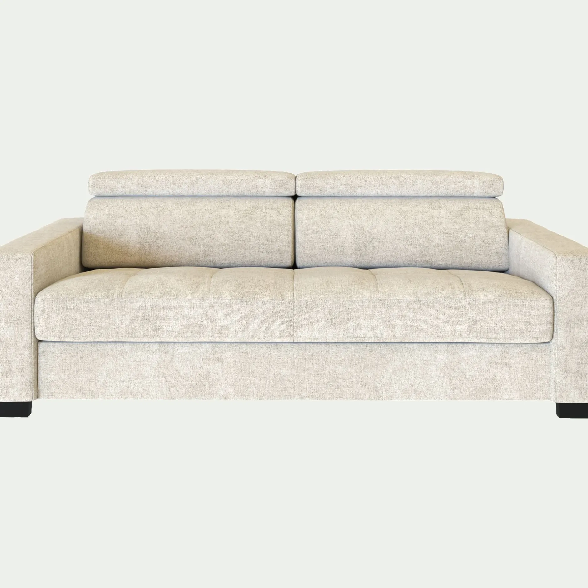 Mauro est une gamme de canapés au style contemporain et d’une grande élégance pour décorer votre salon. Conçu en Italie, il est le fruit d’un travail minutieux et d’un savoir-faire unique. Ce canapé 3 places en tissu genesis de couleur blanche, arborant de larges accoudoirs de 20 cm et des têtières relevables, vous procurent un confort d’assise incomparable et vous invite à savourer d’agréables moments de détente. Avec sa fonction convertible, vous pourrez le transformer en un confortable couchage afin d’accueillir famille et amis. Un meuble de fabrication européenne qui sera la pièce maîtresse de votre salon va et sublimera votre décoration d’intérieur.