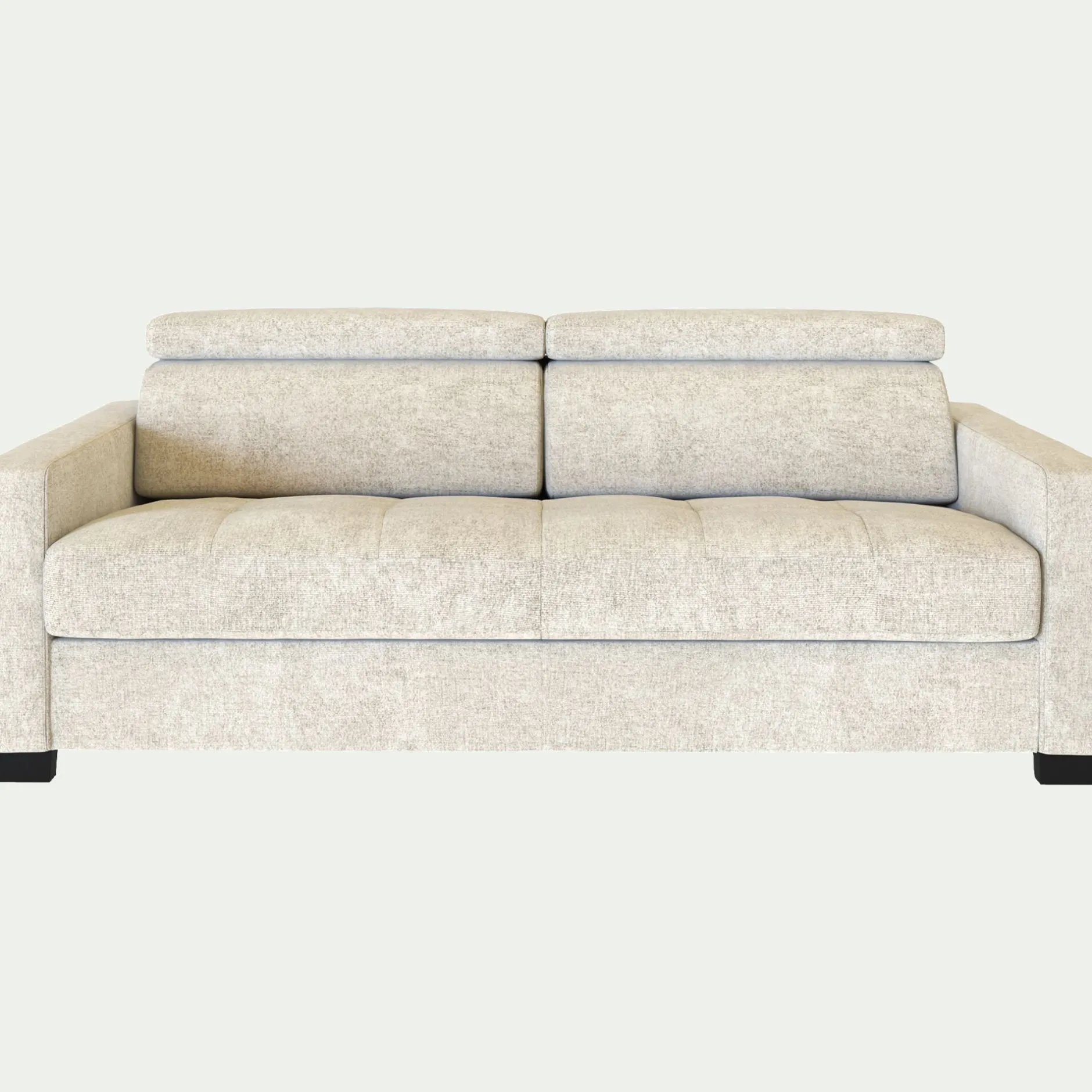 Ce canapé droit 3 places ajoute au salon une élégance intemporelle et un confort remarquable. Confectionné en Italie, il repose sur une structure robuste en bois certifié FSC, garantissant une grande durabilité dans le temps. Son assise et son dossier en mousse offrent un accueil moelleux, idéal pour les instants de repos. Revêtu de tissu, ce canapé fixe propose un toucher agréable été comme hiver. Ce canapé en tissu arbore notre coloris blanc ventoux, une teinte claire et lumineuse qui agrandit visuellement l’espace. Son design sobre et raffiné s’intègre facilement dans différents styles, du contemporain au plus classique. Ses accoudoirs de 15 cm et ses têtières inclinables participent à un confort incomparable.