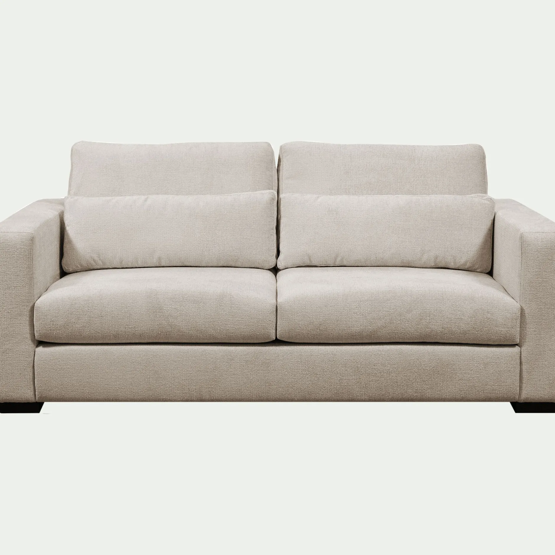 Avec son revêtement en tissu tramé, un tissage soyeux et résistant, ce canapé fixe 3 places allie élégance et résistance. Son coloris beige, à la fois lumineux et polyvalent, apporte une touche naturelle au séjour. Confortable, il offre une assise profonde et généreuse qui invite à la détente. Son dossier moelleux complète ce cocon de bien-être, idéal pour des instants de convivialité ou de repos. Conçu pour durer, ce canapé droit repose sur une structure en pin massif et des pieds en bois massif, gages de solidité et de stabilité. Pratique au quotidien, son assise et son dossier sont entièrement déhoussables, pour un entretien facilité. Une pièce chaleureuse et fonctionnelle, fabriquée en Ukraine, qui s’intègre avec harmonie dans tous les intérieurs.