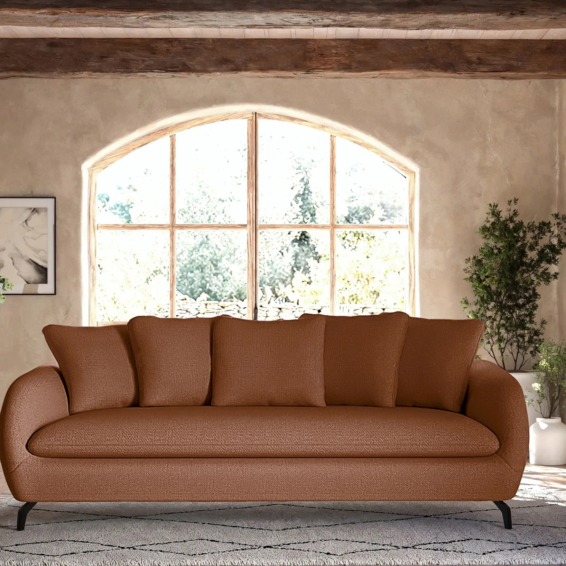 Un joli canapé convertible en tissu pour profiter agréablement de votre salon. Un look contemporain et accueillant, sublimé par un piétement original en acier noir. Vous apprécierez la forme du dossier et des accoudoirs qui vous offrent un maintien optimal de votre dos pour un confort d’assise exceptionnel. Un canapé fabriqué en France, dans des ateliers proches de la ville de Bourges, qui incarne l’excellence du savoir-faire français. Un coloris brun rustrel qui apporte une note citadine et raffinée à votre décoration de salon.