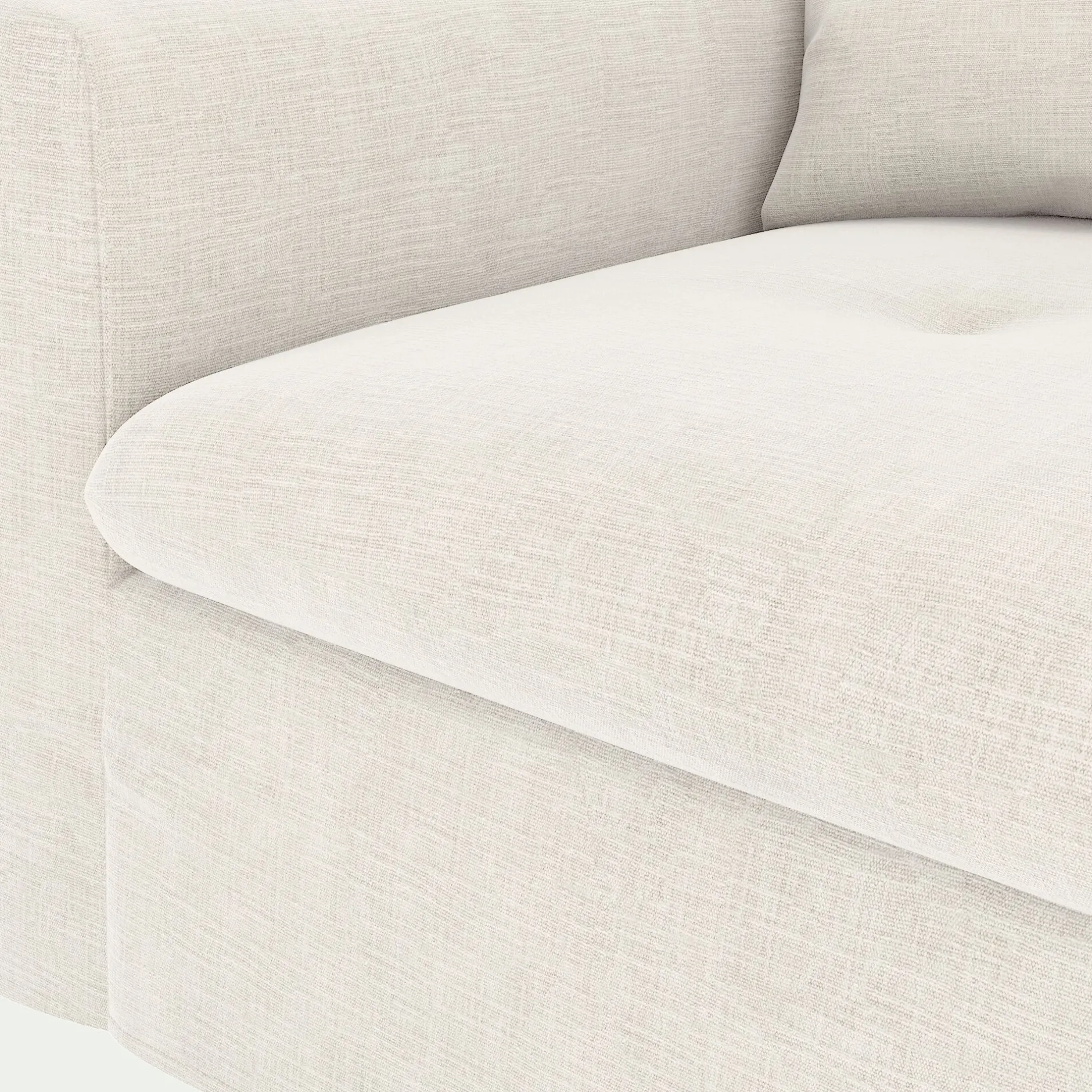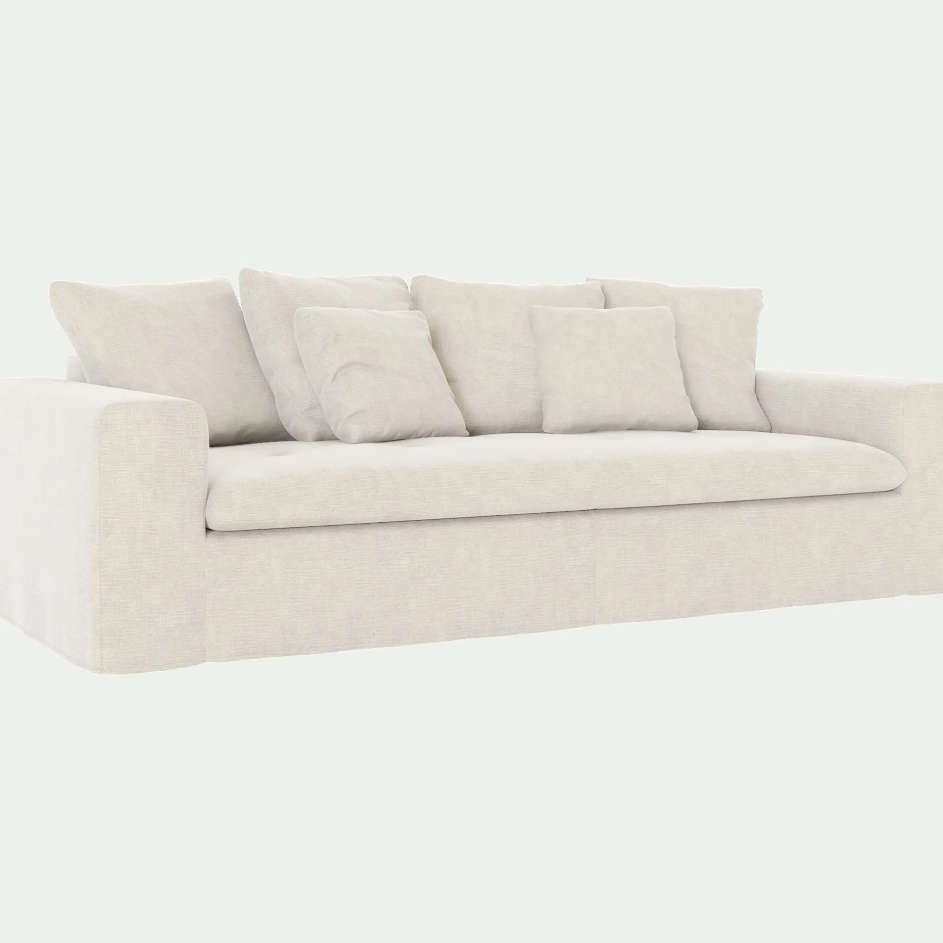 Laissez vous séduire par le charme du canapé Elea, un meuble pensé pour sublimer votre salon. Ce canapé 4 places fixe allie à la fois esthétisme et confort, pour un espace de vie chaleureux. Son dossier à l’accueil plume vous procure une sensation de bien-être douillet alors que sa profonde assise vous donne une impression cocooning d’enveloppement. Ses coussins de dossier, soigneusement jetés, accentuent son aspect accueillant tout en apportant une touche de décoration raffinée. Son surmatelas délicatement intégré confère à l’ensemble une sensation de légèreté fortement appréciable. En ce qui est du design, ses lignes épurées et sa jupe font de lui un atout charme intemporel. Revêtu d’un tissu doux de couleur blanc ventoux, il vous permet de vous prélasser tout en apportant un côté lumineux et apaisant à votre pièce. Idéal pour la détente ou pour recevoir famille et amis, il incarne à merveille l’équilibre entre sophistication et confort inouï.