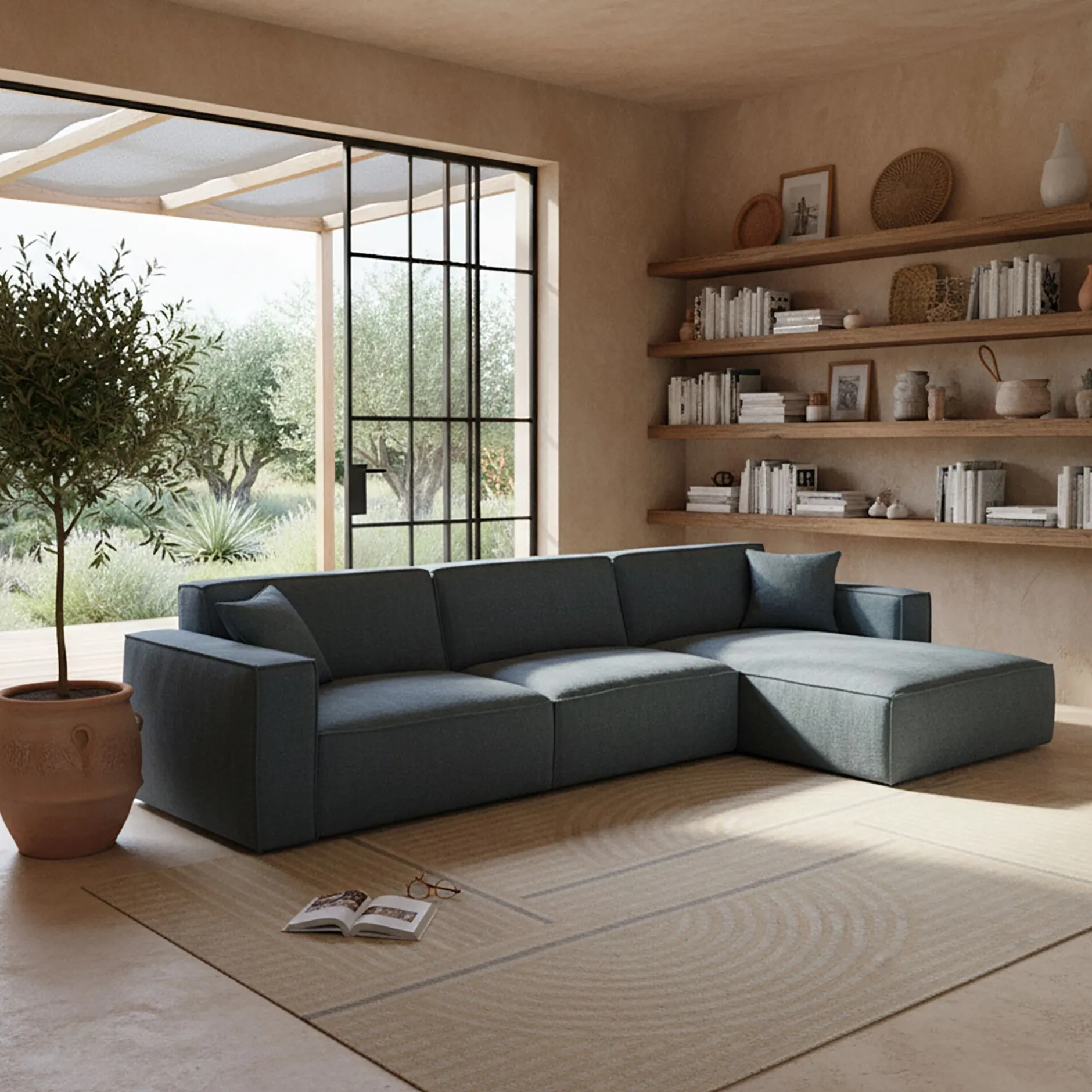Canapé En Tissu|Canapé 4 Places*alinea Canapé grand angle droit fixe en tissu tramé – Bleu