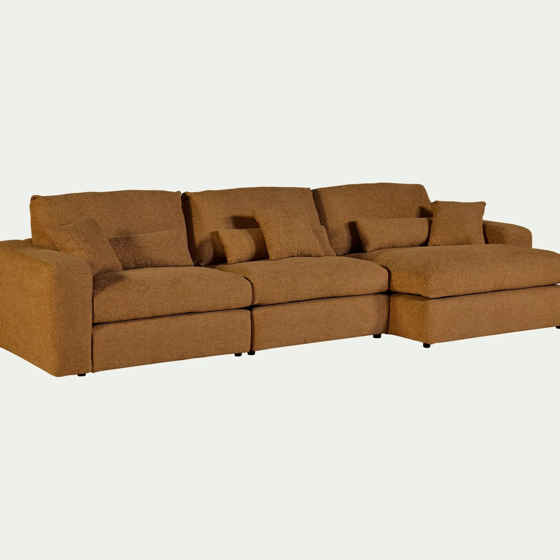 Le canapé Piuma est idéal pour se prélasser dans votre salon. Avec ses grandes assises, ce canapé d’angle droit en tissu chenille vous offre un confort exceptionnel. Il vous permet de vous détendre au coeur de coussins moelleux dans un nuage de douceur renforcé par son tissu délicat. Vous pourrez ainsi recevoir famille et amis lors d’un moment apaisant. Ce canapé fixe de couleur jaune argan apporte également une touche design moderne et élégante à votre salon. Son tissu chenille donne un côté cocooning qui vous permet de transformer votre pièce en un espace chaleureux.