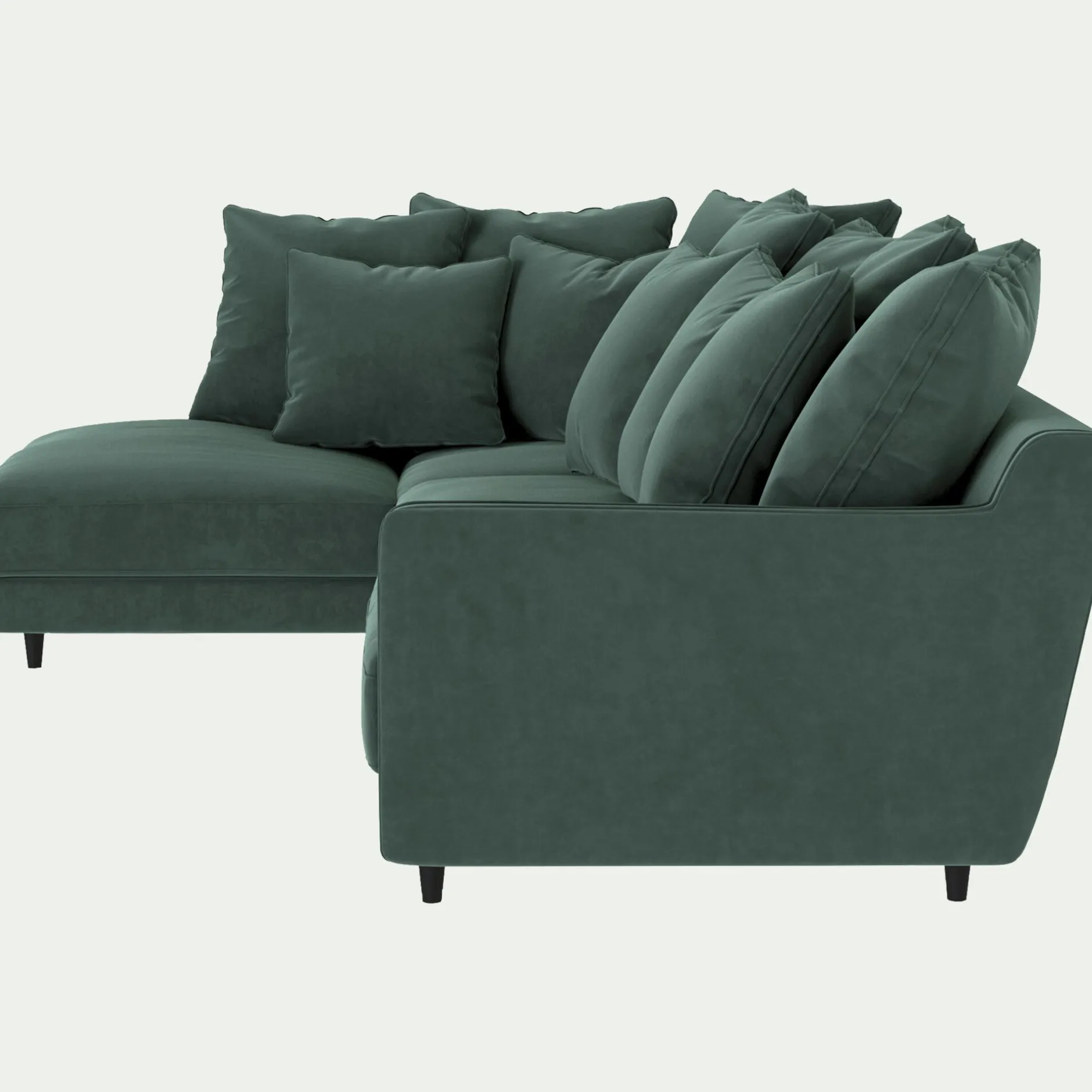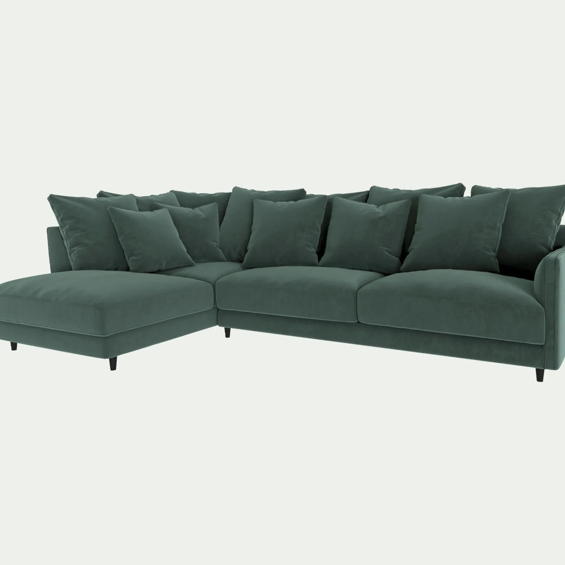 Majestueux et raffiné, le canapé d’angle Lenita avec angle à gauche incarne l’élégance du style Second Empire avec une touche contemporaine. Fabriqué à la main en Italie, dans la région de Farra di Soligo, il témoigne d’un savoir-faire traditionnel d’exception. Son tissu velvet dans notre coloris vert sauge, naturel et apaisant, s’harmonise avec tous les intérieurs, tandis que ses lignes généreuses et ses coussins moelleux invitent à la détente. Avec son assise profonde et son rembourrage en plumes d’oie, ce grand canapé fixe offre un confort exceptionnel pour accueillir famille et amis. Sa structure robuste en bois renforcé de sapin massif, issu de forêts certifiées FSC®, garantit une grande longévité. Entièrement déhoussable, il se nettoie facilement. Un canapé 5 places qui conjugue élégance, confort et durabilité, et qui deviendra sans conteste la pièce maîtresse du séjour.