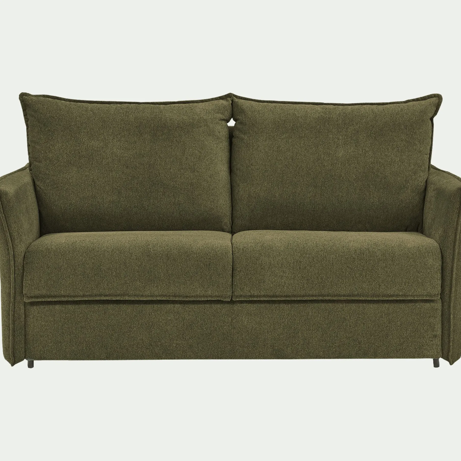 Le canapé Moya offre un soutien optimal adapté à chaque partie du corps. Ce canapé 3 places convertible à la fabrication italienne, confectionné à partir du savoir faire local, vous permet de vous détendre dans une pièce hautement qualitative. Le soir, dépliez votre canapé et transformez-le en un lit au couchage 140×195 cm d’une densité de 25kg/m3 qui vous permettra d’accueillir famille et amis. Très confortable, ce canapé peut servir de couchage quotidien. Son mécanisme métallique vous permet de le déplier en quelques secondes sans enlever ses coussins. Ce canapé en tissu, avec sa couleur vert cèdre et son liseré décoratif, apportera de l’élégance à votre salon.