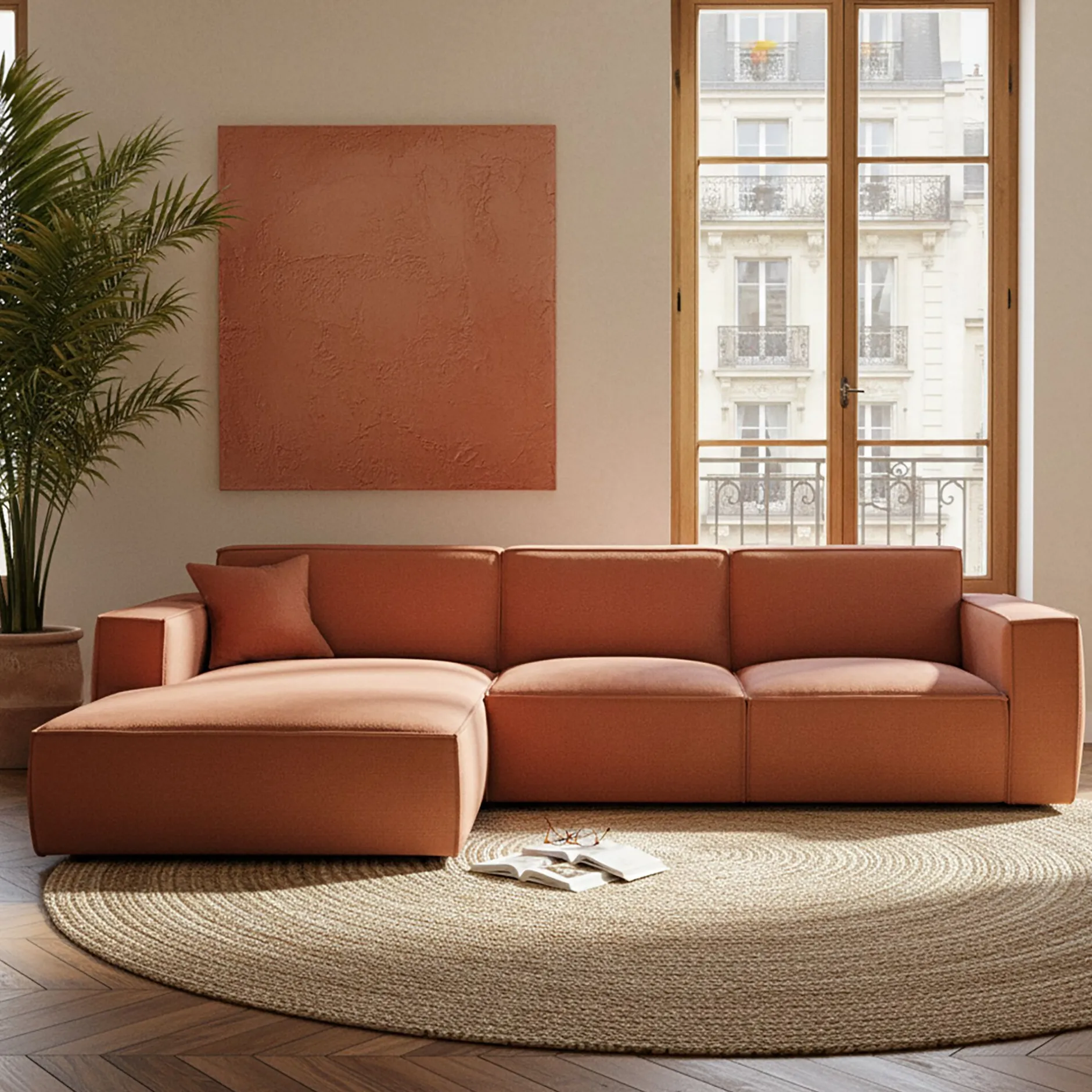 Le canapé d’angle Kubo avec méridienne à gauche est pensé pour offrir un espace accueillant et chaleureux dans le salon. Habillé de tissu genesis, à la fois doux et résistant, il allie confort et praticité au quotidien. Son coloris brun rustrel, chaleureux et cocooning, s’intègre facilement dans toutes les ambiances et habille le séjour d’une touche de douceur. Fixe et généreux, ce canapé se distingue par une silhouette contemporaine qui structure l’espace avec élégance. Fabriqué en Ukraine, il conjugue style et confort pour accompagner les instants de détente comme les moments partagés.