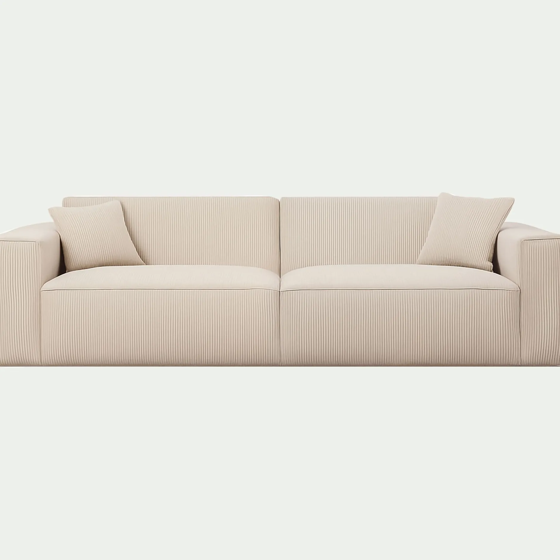 Avec son design épuré et son élégance naturelle, ce canapé droit 4 places s’impose comme une pièce centrale du salon. Son revêtement en velours côtelé beige illumine la décoration et s’harmonise avec tous les styles d’intérieur, du contemporain au plus classique. Conçu en Ukraine, il allie qualité et confort grâce à sa structure en pin massif et son assise dotée de ressorts Nosag, réputés pour leur durabilité et leur souplesse. Son assise généreuse et son dossier accueillant créent un espace cosy, parfait pour des instants de détente ou des moments de convivialité. Idéal pour aménager un salon chaleureux et moderne, ce canapé fixe séduit par son allure sobre et intemporelle, permise grâce à la qualité du tissu azores.