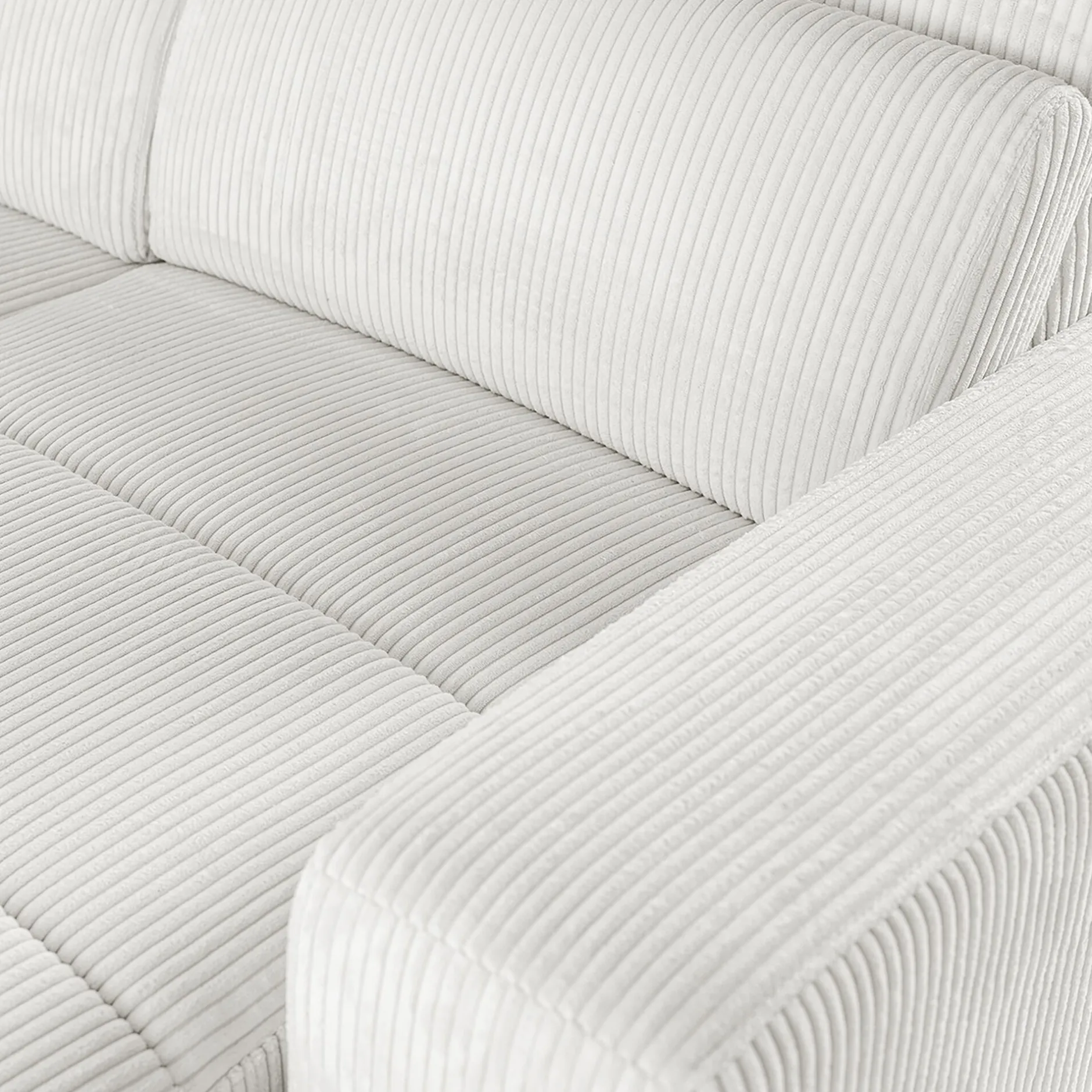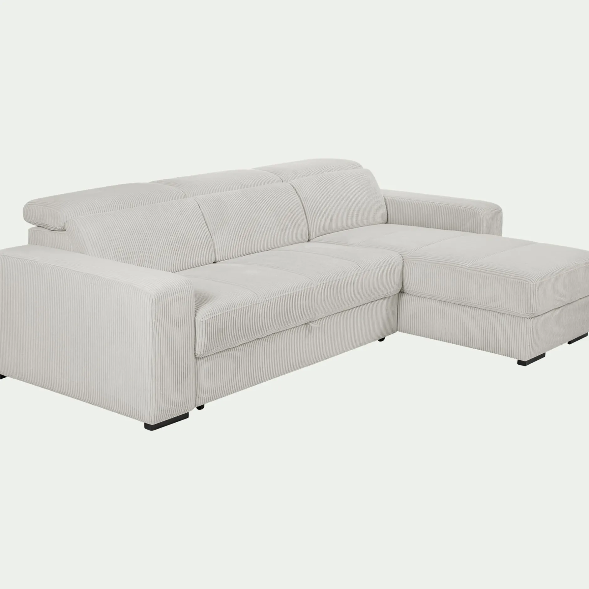 Ce canapé d’angle réversible, en tissu côtelé beige roucas, conjugue élégance contemporaine et fonctionnalité. Sa silhouette généreuse s’adapte à tous les espaces grâce à son angle modulable à droite ou à gauche. L’assise spacieuse, rehaussée de têtières ajustables, invite à des instants de détente tout en soutenant parfaitement la nuque, selon les envies. Convertible en couchage d’appoint 130×200 cm, ce canapé se transforme en lit en un clin d’œil pour accueillir famille ou amis. Son coffre dissimulé sous la méridienne offre un espace de rangement pratique pour les coussins ou les plaids. Avec son tissu doux à grosses côtes, à la fois chaleureux et moderne, ce canapé est une pièce aussi confortable que maline, idéale pour un grand séjour vivant et accueillant.