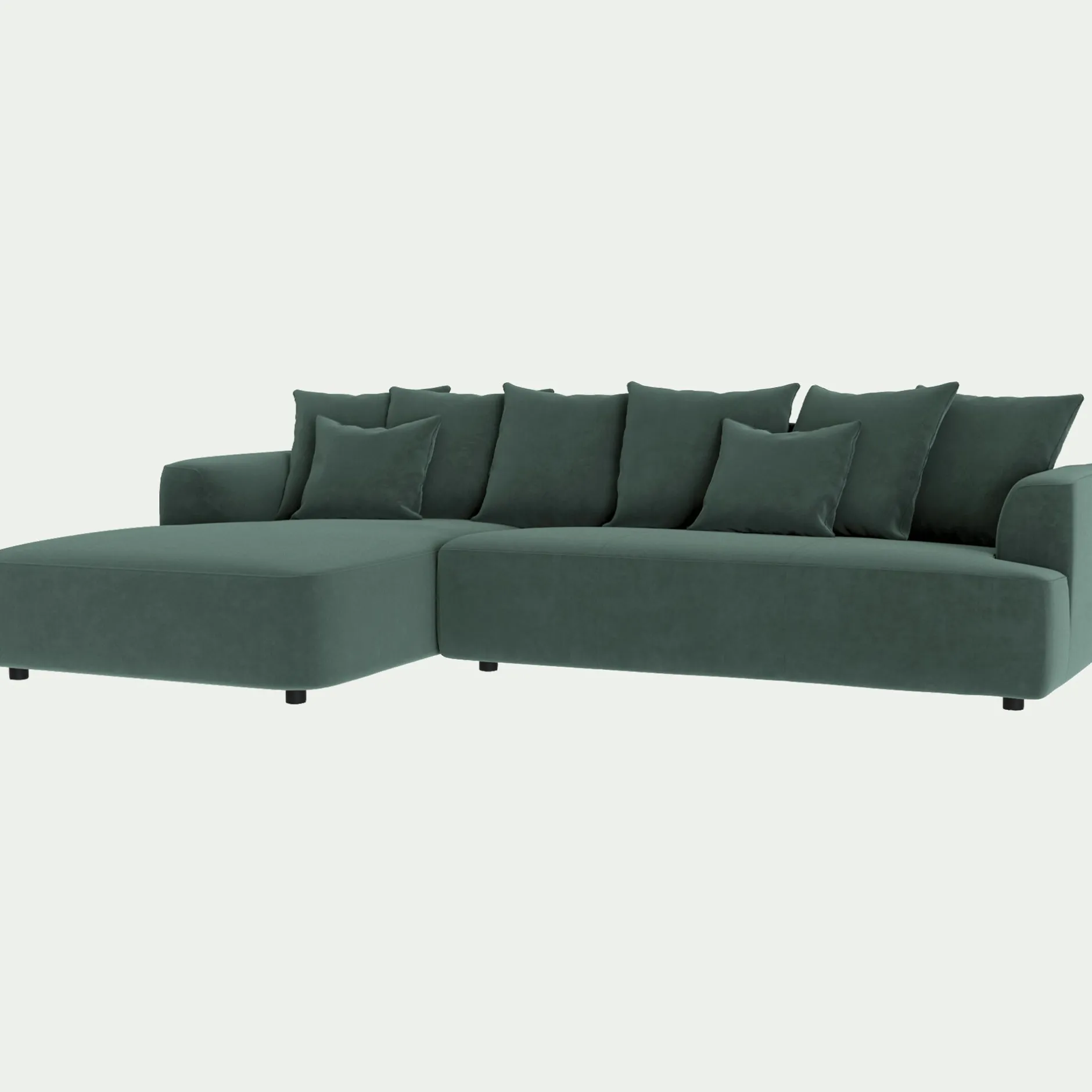 Un élégant canapé vert sauge pour illuminer votre salon. Un confort ferme enveloppé par un tissu des plus doux pour une assise très confortable. Un canapé chaleureux qui vous invite à la détente. Un superbe canapé fixe en tissu qui conviendra parfaitement pour être la pièce maîtresse de votre salon. Idéal pour les grands espaces, ce canapé grand angle opte pour un style épuré et empreint de douceur. Son assise moelleuse et ses accoudoirs larges vous envelopperont pour un agréable confort et vous apprécierez le toucher tout doux de son revêtement. Son coloris sobre et chic sera du plus bel effet et donnera le ton dans votre pièce à vivre. Un canapé de qualité fabriqué en Italie qui saura apporter un réel charme à votre intérieur.