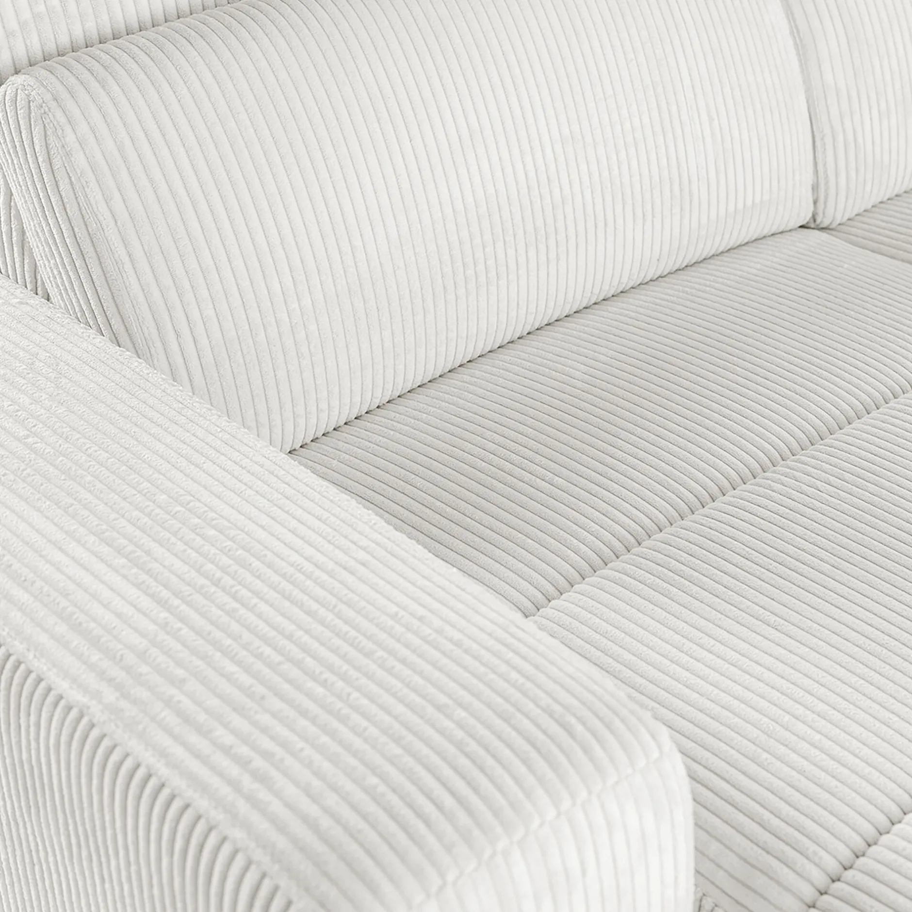 Ce canapé panoramique en tissu côtelé beige roucas est la solution complète pour votre salon. Sa forme en U structure l’espace et offre une capacité d’accueil exceptionnelle. Pensé pour le quotidien, il se transforme facilement en un couchage confortable. Sous sa méridienne se cache un vaste coffre de rangement, idéal pour optimiser votre pièce de vie. Son tissu à grosses côtes, à la fois tendance et résistant, en fait une pièce aussi esthétique que maline. Un véritable canapé 3-en-1, parfait pour les grandes familles et les intérieurs vivants.