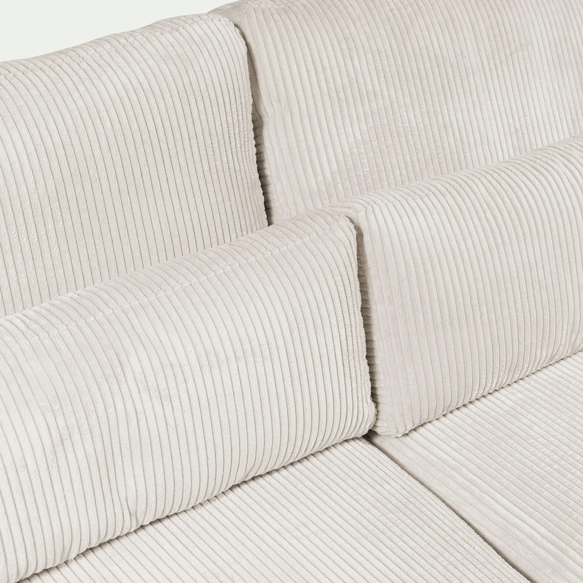 Le canapé grand angle droit fixe Batis incarne l’alliance parfaite entre confort et élégance. Sa structure solide en bois massif assure une stabilité et une durabilité exceptionnelles. Revêtu d’un velours côtelé beige, il offre une texture douce et un aspect cocooning. Les coussins déhoussables facilitent l’entretien et permettent de maintenir la fraîcheur du canapé. Avec ses 6 places spacieuses, il offre un espace généreux pour se détendre en toute tranquillité ou pour accueillir confortablement vos invités. Ce canapé d’angle droit en velours allie praticité, confort et esthétique, ajoutant une touche de raffinement à votre salon.