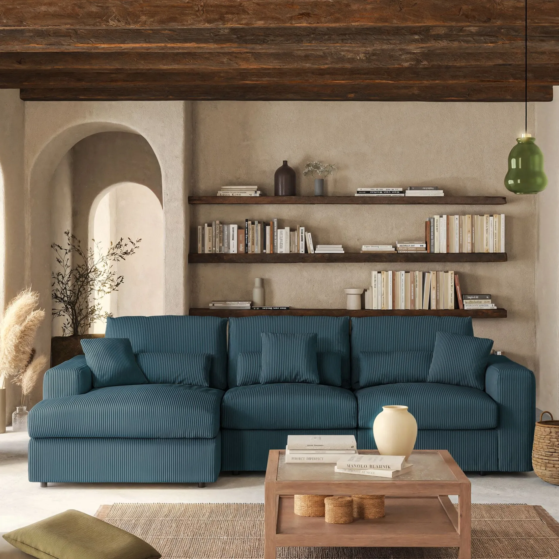Canapé En Velours|Canapé Fixe*alinea Canapé petit angle gauche fixe en velours côtelé – Bleu