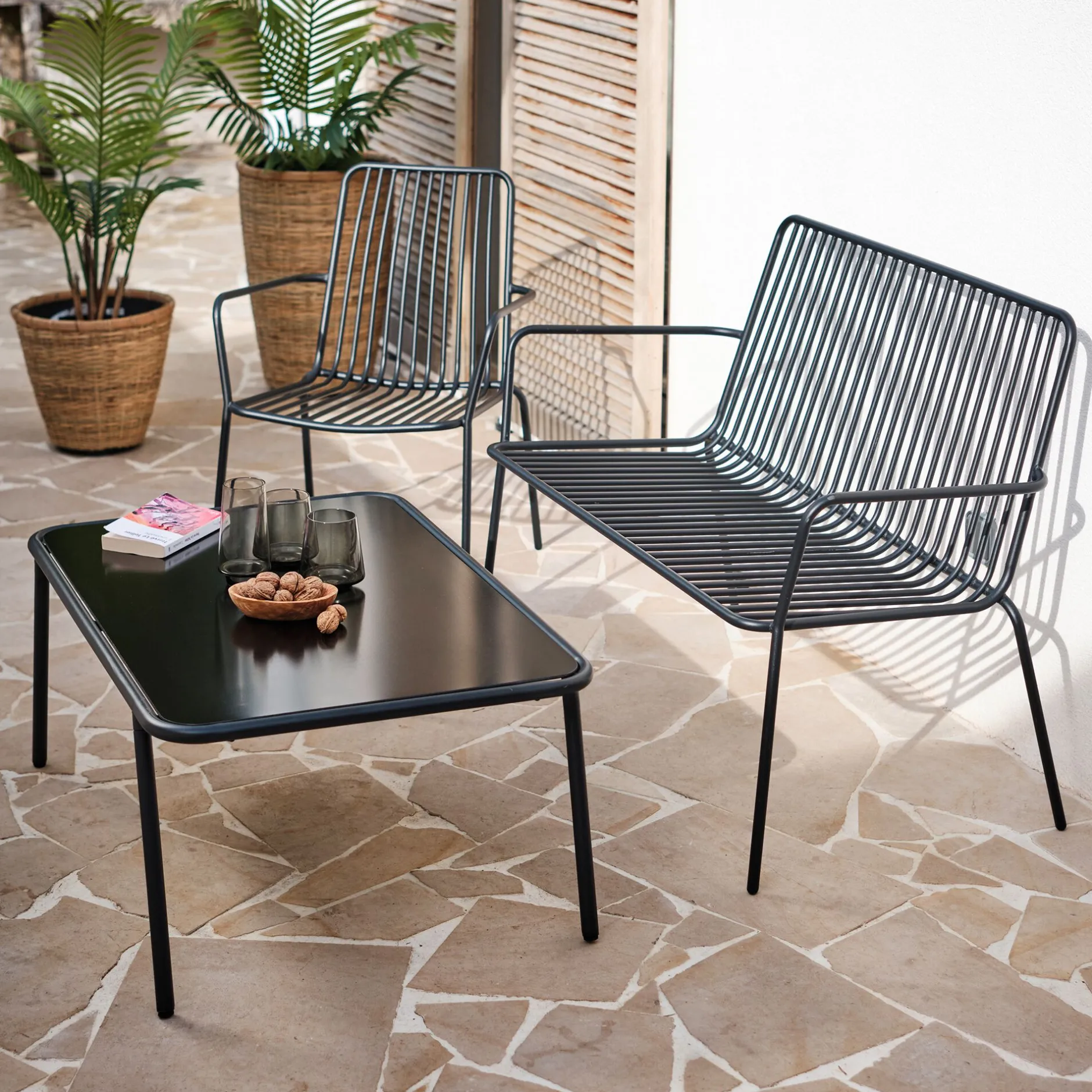 Le canapé de jardin Mare transforme votre terrasse ou jardin en un havre de convivialité. Confectionné en acier noir avec un traitement anti-corrosion, il allie robustesse et style intemporel. Conçu pour deux personnes, ce canapé en métal révèle son potentiel une fois associé à des coussins. Idéal pour l’extérieur, cette banquette de jardin est parfaite pour partager un moment à deux ou simplement se détendre au soleil.