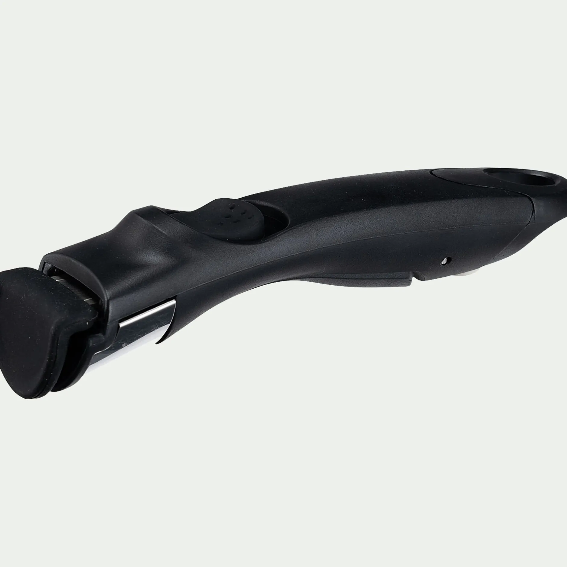 Découvrez ce set de 3 casseroles fourni avec une poignée amovible en bakélite et insert silicone. Cela vous permet de passer d’un ustensile à l’autre, de la plaque au four en toute simplicité et sécurité. Vous pouvez aussi empiler les casseroles et y mettre le manche, afin de bénéficier d’un rangement optimal. Le corps des casseroles est en aluminium avec un fond en acier inoxydable pour une répartition optimum de la chaleur. Avec une épaisseur de 2.5mm et un revêtement anti-adhésif haute résistance, cette gamme mobile est tous feux dont induction. Ce sont des ustensiles de cuisine pratiques qui conviendront parfaitement pour préparer de savoureux repas au quotidien. Retrouvez dans la même collection un set de poêles pour venir compléter cette batterie.