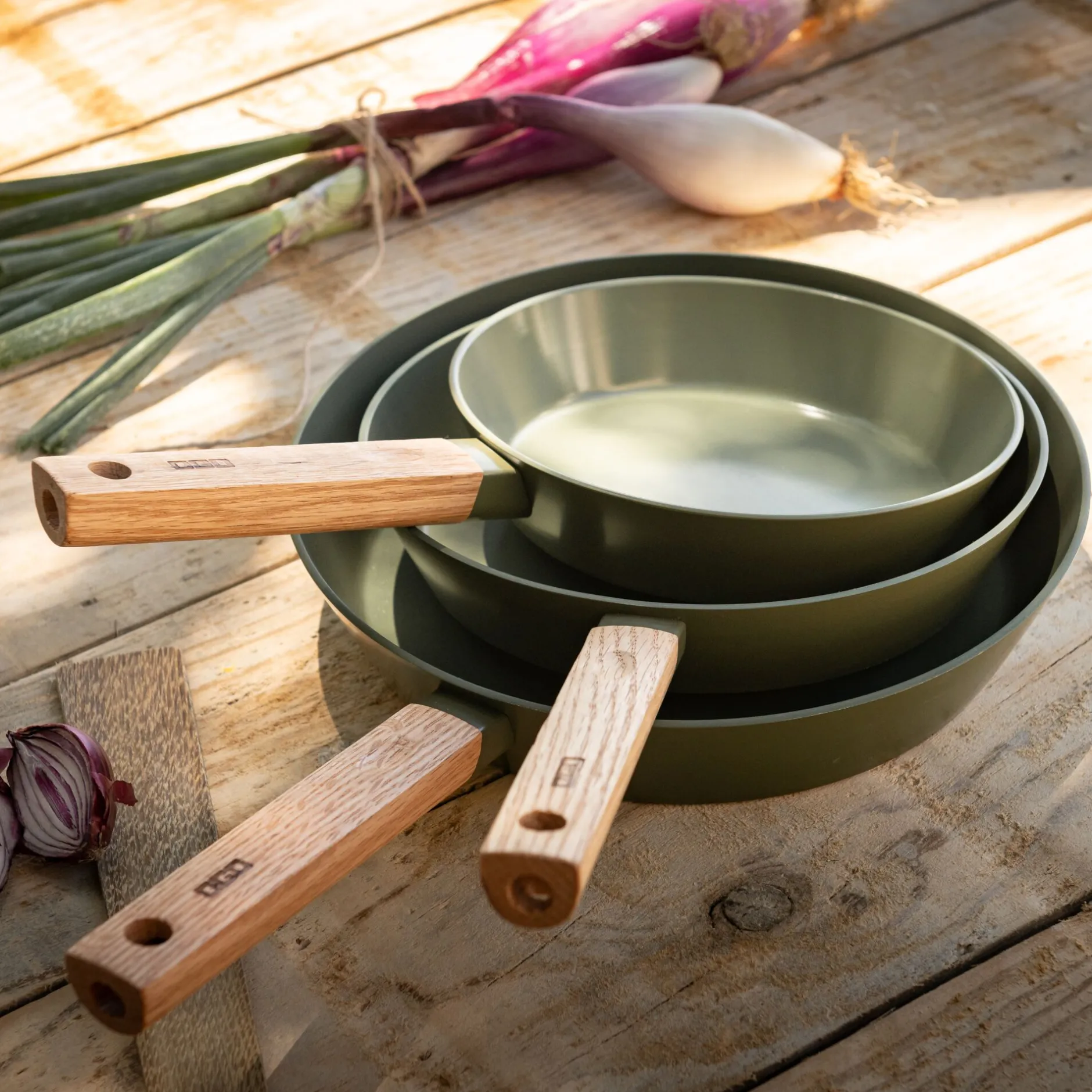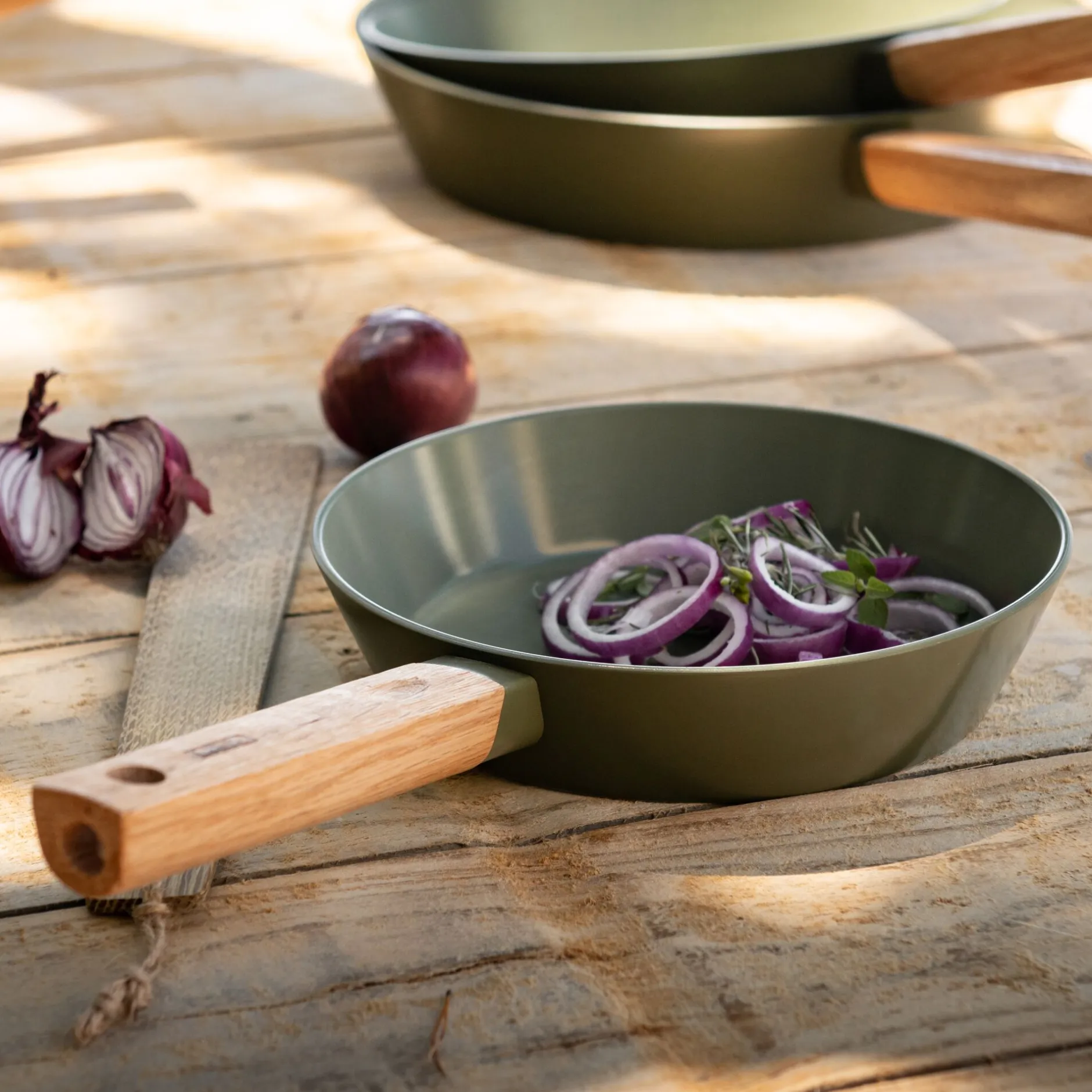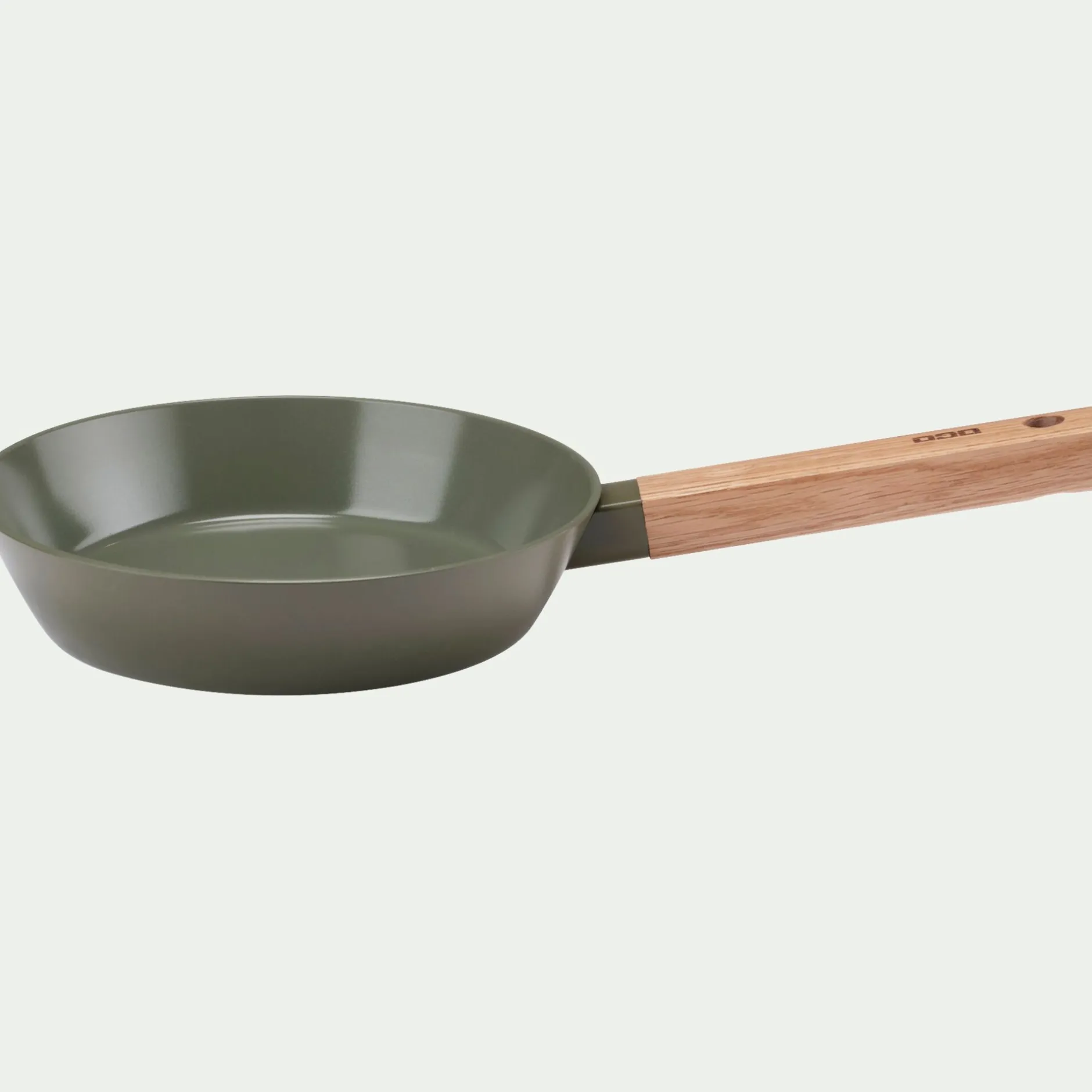 Découvrez la gamme de matériel de cuisson Ector. Une gamme alliant design et praticité. Cette poêle se compose d’un aluminium forgé et d’un manche en bois de chêne brut naturel. L’aluminium permet une cuisson parfaitement homogène. Grâce à ses caractéristiques techniques, la cuve en aluminium forgé de 3 à 4,5 mm profère une qualité remarquable de diffusion de la chaleur. C’est l’ensemble de la cuve qui monte en température et non pas uniquement son centre comme sur la plupart des ustensiles de cuisson. Cela permet de maîtriser avec précision la cuisson parfaite d’une viande dans votre appareil. Le revêtement de cette poêle est en céramique. Un matériau connu pour ses propriétés antiadhésives excellentes, et pour sa technologie de surface très robuste. Cette poêle de 20 cm de diamètre est idéale pour un usage quotidien.