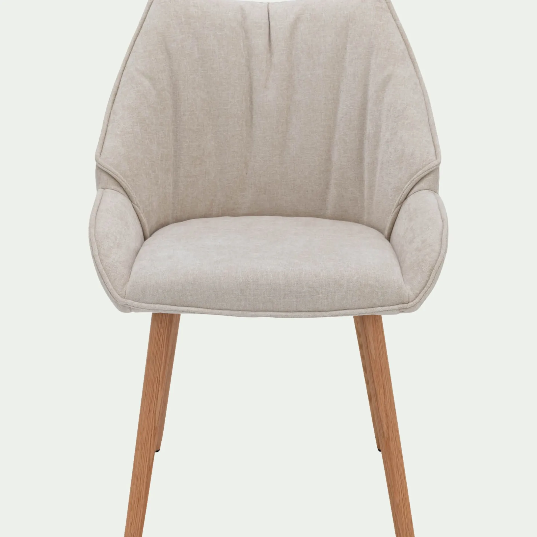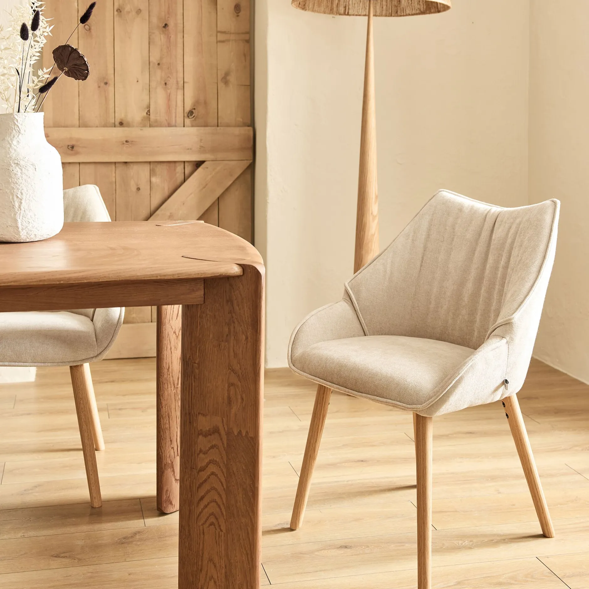 Avec son design cocooning, la chaise Jaume transforme chaque repas en moment de détente. Son piètement en bois certifié FSC apporte une touche naturelle et responsable, tandis que son assise et son dossier généreusement rembourrés, habillés d’un tissu blanc écru, évoquent douceur et sérénité. Une chaise de repas aussi confortable qu’élégante, qui s’intègre avec raffinement dans une salle à manger chaleureuse.