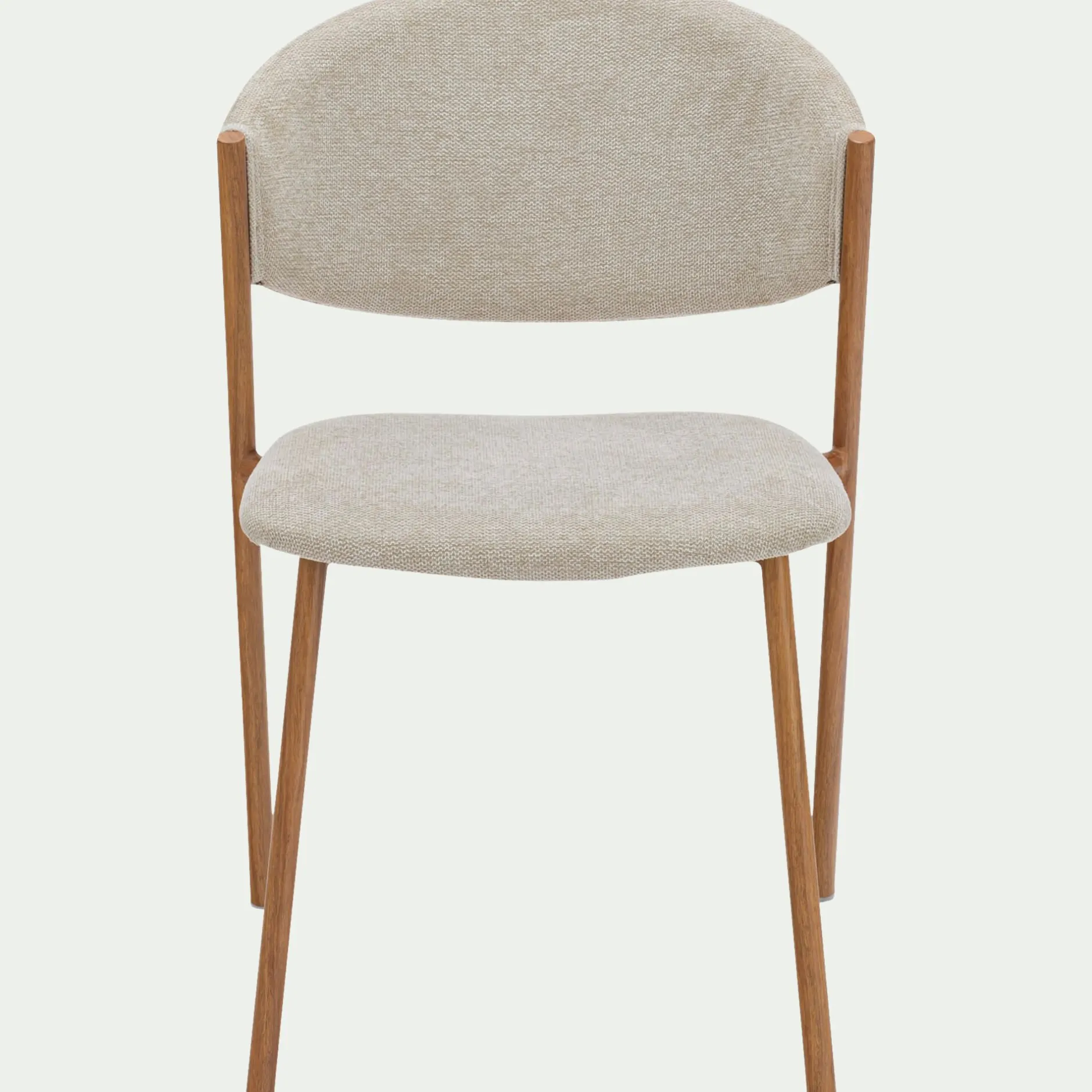 La chaise de repas Cassandre séduit par son allure aérienne et son confort enveloppant. Son piètement en métal effet bois allie finesse et légèreté visuelle, tout en assurant une excellente stabilité. L’assise en tissu Oeko-Tex beige apporte douceur et clarté à la pièce, créant une ambiance chaleureuse et lumineuse. Son dossier incurvé épouse parfaitement le dos pour un confort optimal lors des repas. Une chaise à la fois discrète, élégante et accueillante.