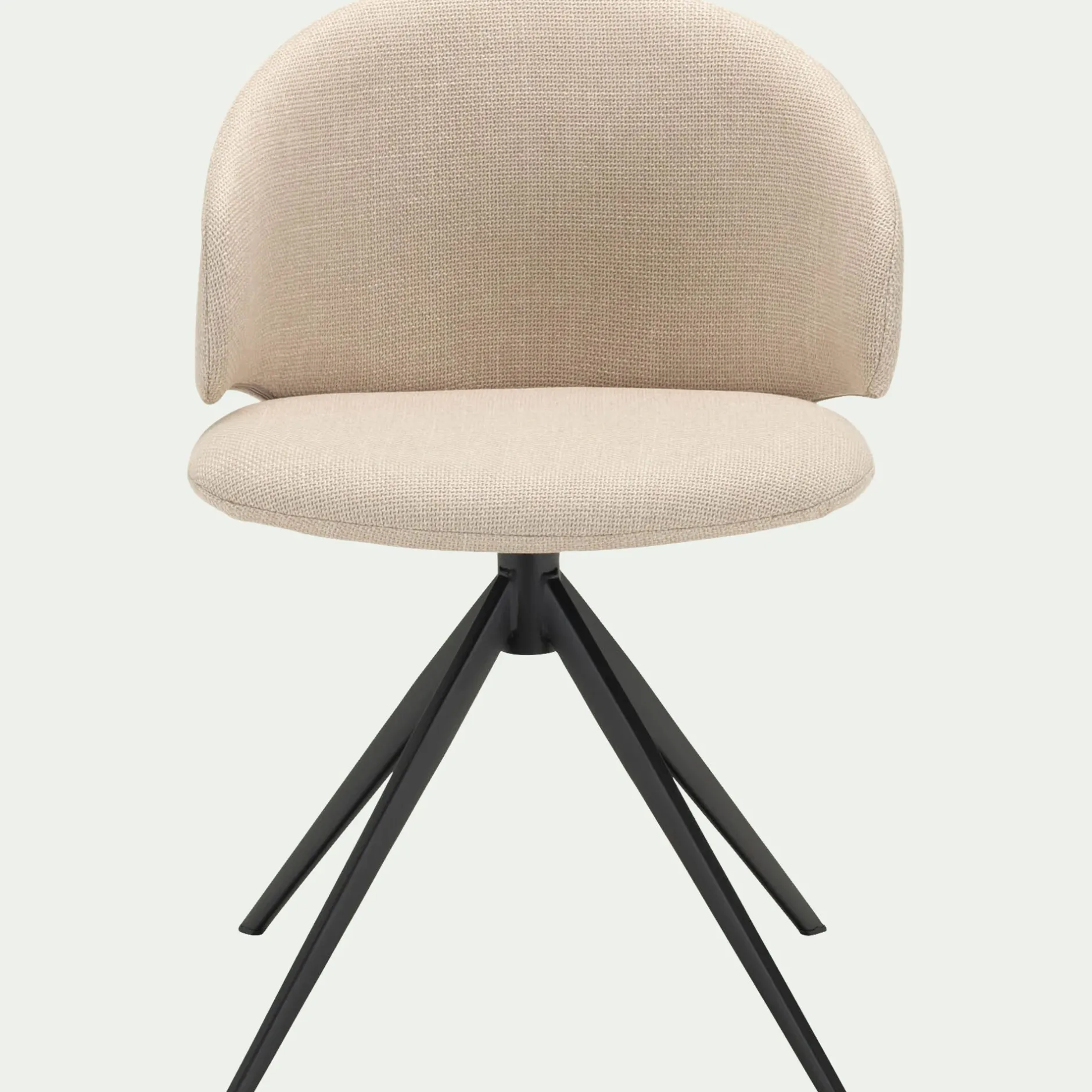 Avec son revêtement en tissu beige, cette chaise de repas allie confort et élégance en toute simplicité. Son assise généreuse et son dossier bien rembourré en font un siège agréable pour les repas prolongés. Pivotante, elle offre une liberté de mouvement idéale au quotidien. Son piètement en acier noir au design graphique affirme un style contemporain, tout en assurant stabilité et solidité. Une chaise en tissu fonctionnelle qui ne fait aucun compromis sur le style.