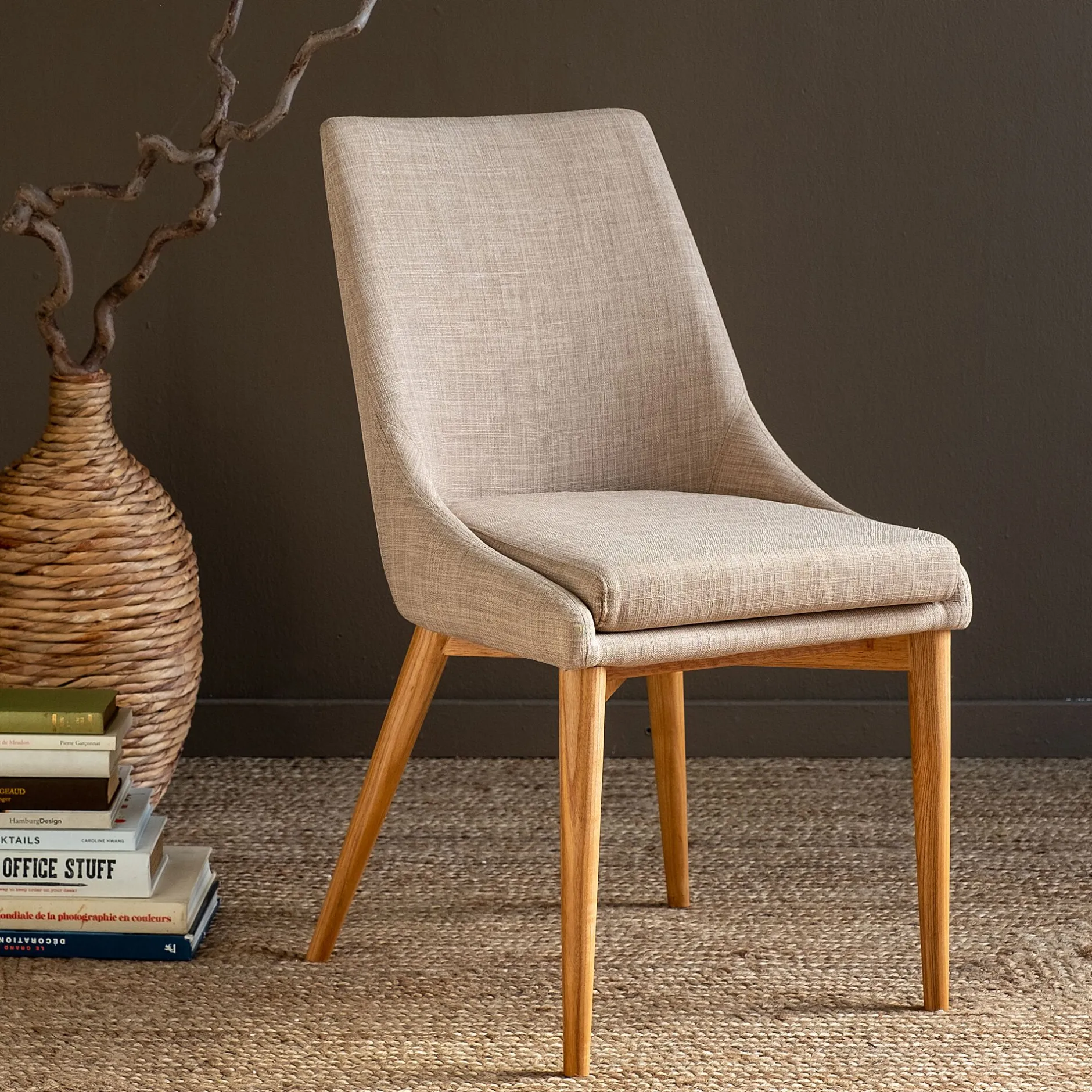 Une décoration cosy s’associera parfaitement avec cette chaise qui ajoutera une note lumineuse et poudrée à votre intérieur. Elle allie le bois clair pour la structure et le moelleux de l’assise qui seront très appréciables pour passer de confortables repas. Craquez pour le coloris beige chiné qui apportera de la douceur près de votre table de salle à manger.