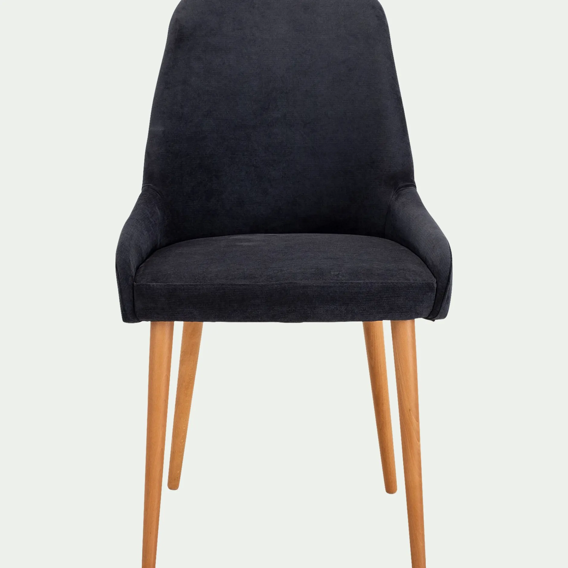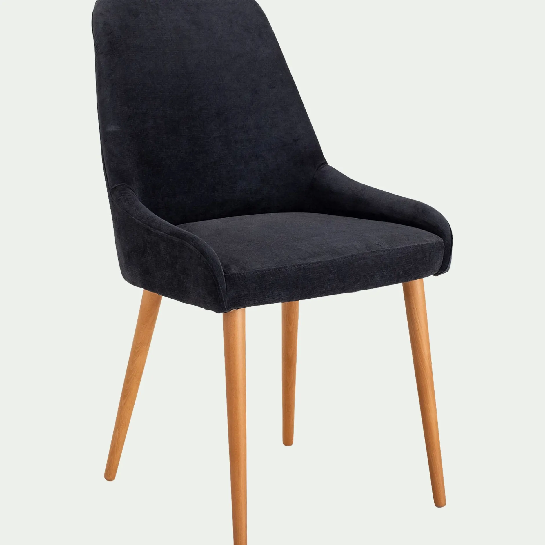 Livno est une chaise de caractère qui accentue la décoration de la salle à manger. Confectionnée en tissu avec un effet velours, cette chaise noire participe à une atmosphère douce mais intense. Le revêtement d’un noir profond s’accompagne d’un piètement naturel. Le hêtre massif conserve toute la superbe, mis en valeur par ses veinures naturelles. Confortable grâce à son assise et son dossier en mousse, cette chaise de salle à manger vous accueille chaque jour lors des repas.