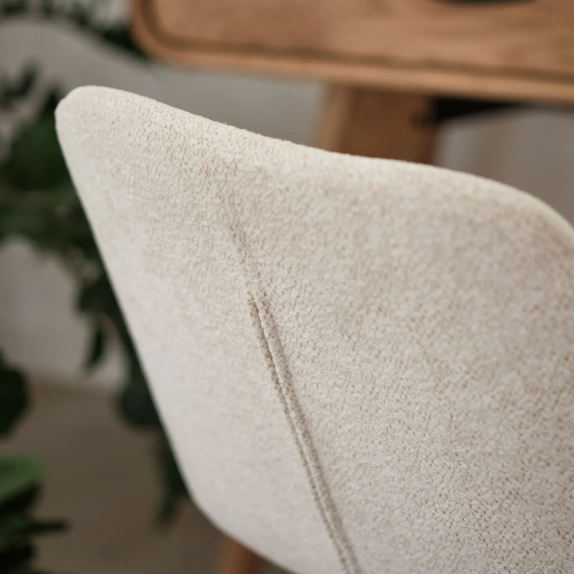 La chaise de repas Afonso, sans accoudoirs, combine élégance et praticité dans un design épuré. Son piètement en noyer massif certifié FSC ®, à la fois robuste et chaleureux, apporte du caractère et met en valeur les veinures naturelles de cette essence noble. L’assise et le dossier, rembourrés de mousse et habillés d’un tissu beige, offrent un confort optimal et un style contemporain. Cette chaise en tissu s’intègre aisément autour de la table, apportant un charme naturel et une touche de modernité à la salle à manger.