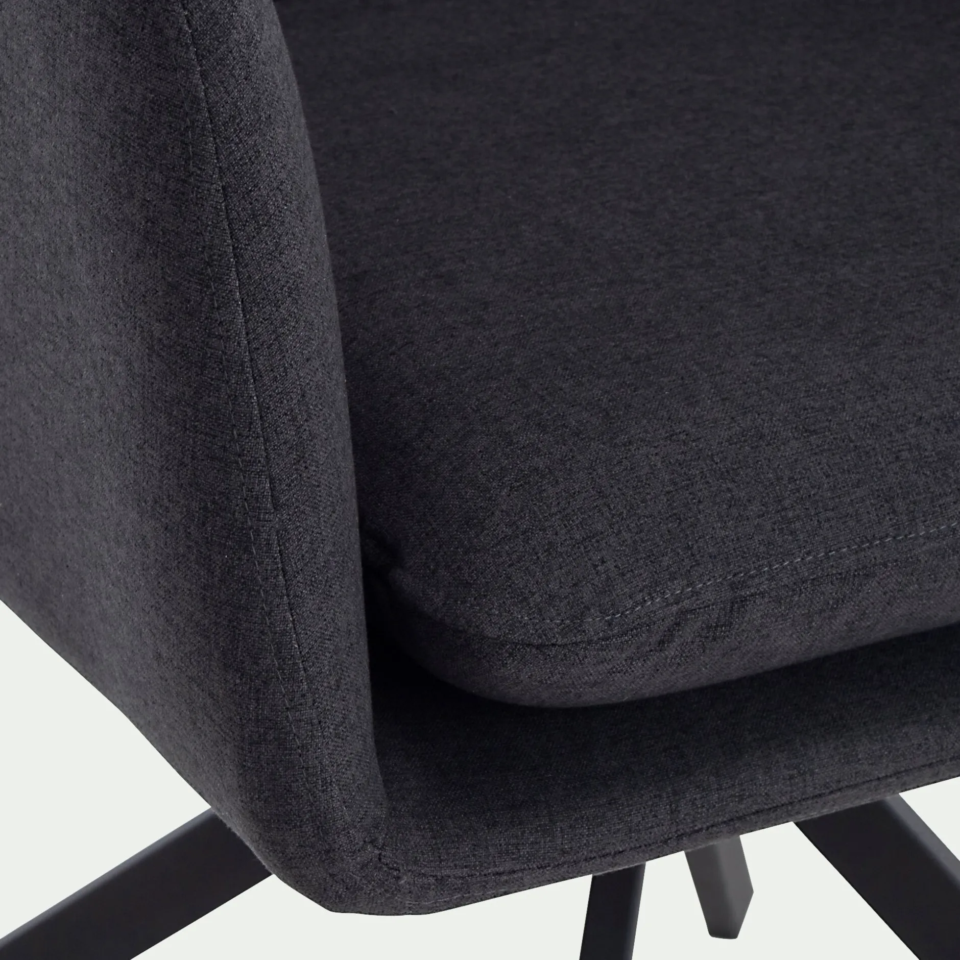 Cette chaise pivotante en tissu trouve sa place idéalement dans votre bureau ou dans la salle à manger et offre une assise confortable et enveloppante grâce à la présence d’accoudoirs. Pivotante, vous serez confortablement installés pour travailler, lire ou écrire. Son coloris noir est élégant et moderne et s’accorde avec le reste de votre décoration et son style épuré ajoute à votre intérieur un côté contemporain.