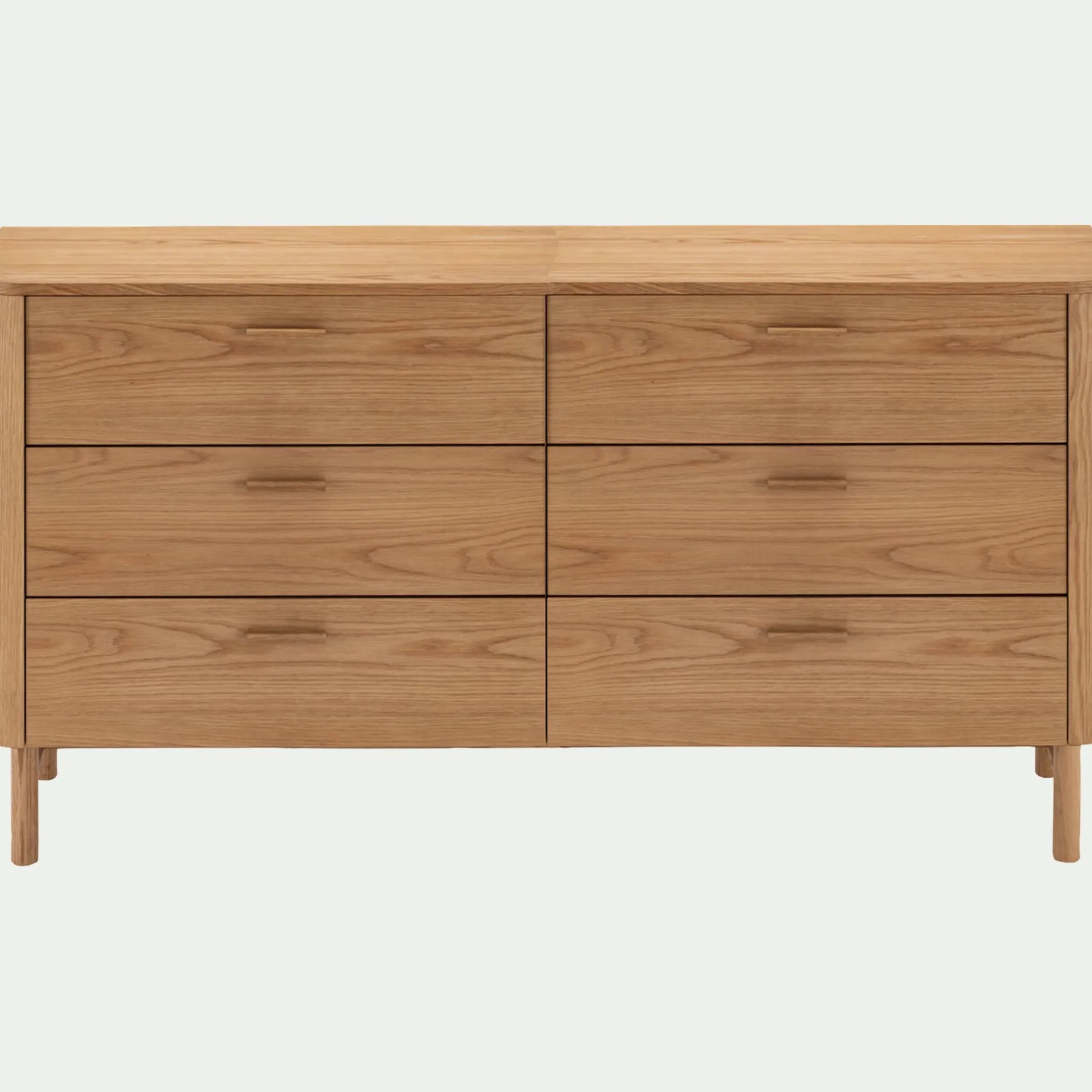 La commode Marietta séduit par son design épuré et fonctionnel. Réalisée en bois clair certifié FSC, elle apporte une touche naturelle et lumineuse à la chambre. Ses six tiroirs spacieux permettent d’organiser vêtements et accessoires avec aisance. Les poignées minimalistes soulignent son style sobre et contemporain, faisant de cette commode un meuble à la fois pratique et élégant.