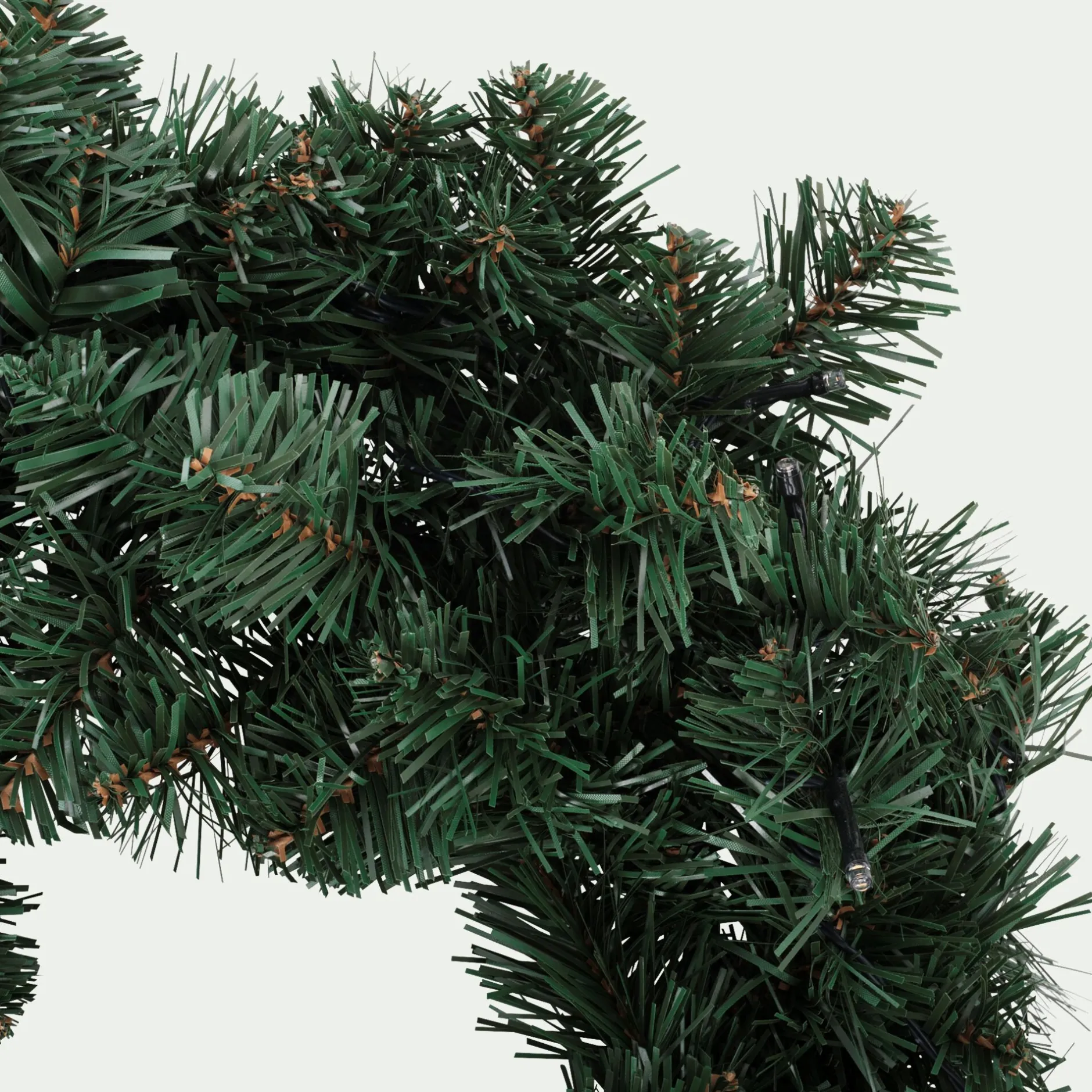 À Noël, on aime une décoration soignée dans les moindres détails. La couronne de Noël est un classique de la saison hivernale qui vous permet de décorer votre maison jusqu’à votre porte tout en respectant la tradition. Cette couronne, confectionnée en branches de sapin artificielles et composée de leds, apporte une pointe de décoration élégante et naturelle à votre intérieur. Cette décoration murale de Noël peut aussi bien s’accrocher à un mur ou se poser au centre d’une table pour une décoration originale et délicate.