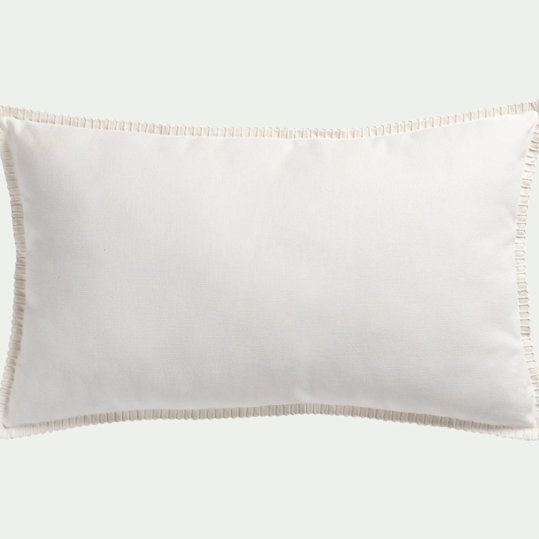Comble de l’élégance, le coussin déco Agde apporte une touche d’éclat raffiné à votre séjour. Sa housse en coton arbore un blanc immaculé, subtilement bordée par une surpiqûre en point de cheval. Cette fine broderie apporte de la texture, mais surtout de la prestance à ce coussin blanc. De 30×50 cm, ce coussin rectangulaire trouve sa place dans le canapé comme une promesse d’un confort supérieur et d’un style épuré.