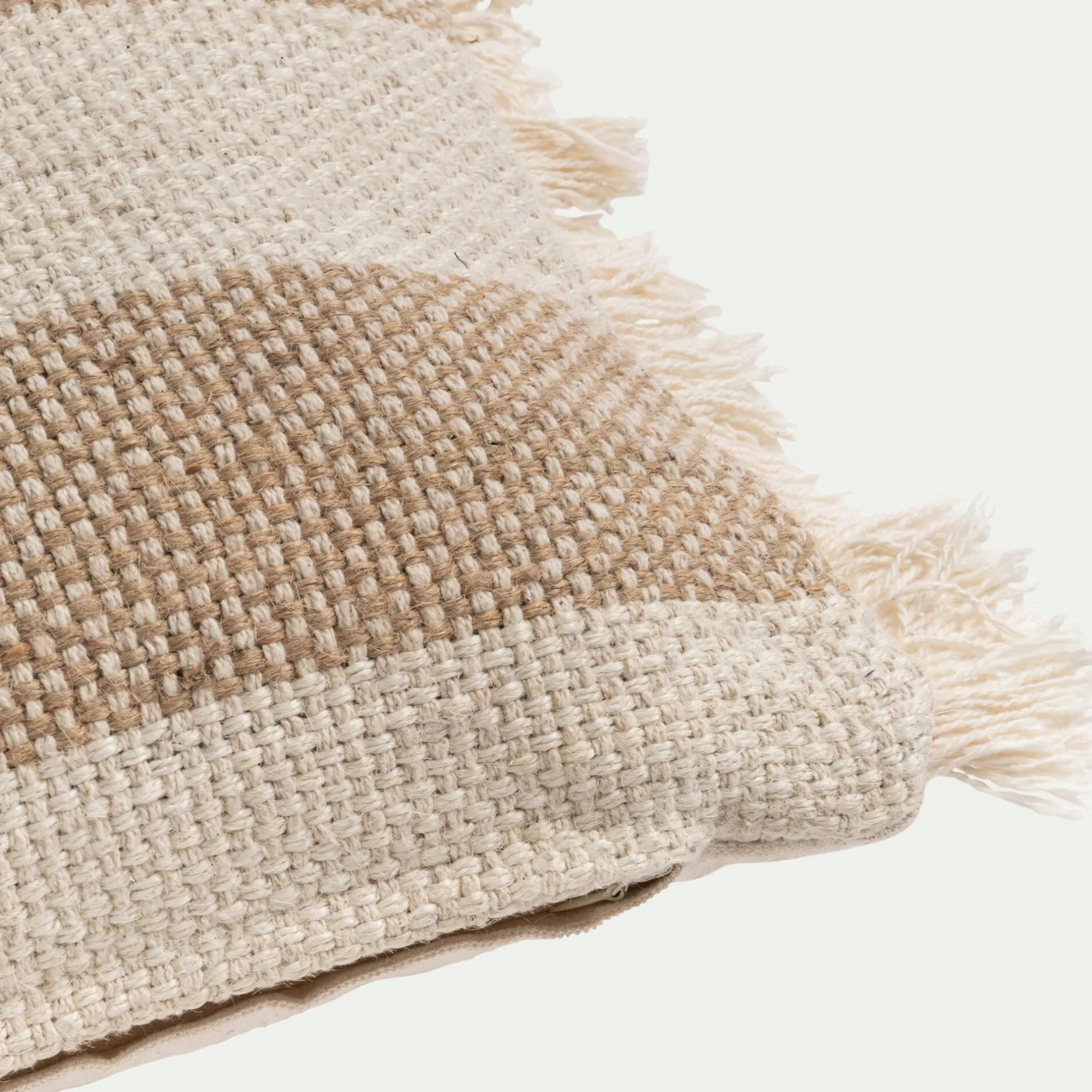 Coussin*alinea Coussin en coton et jute à rayures finition franges 30x50cm – Blanc