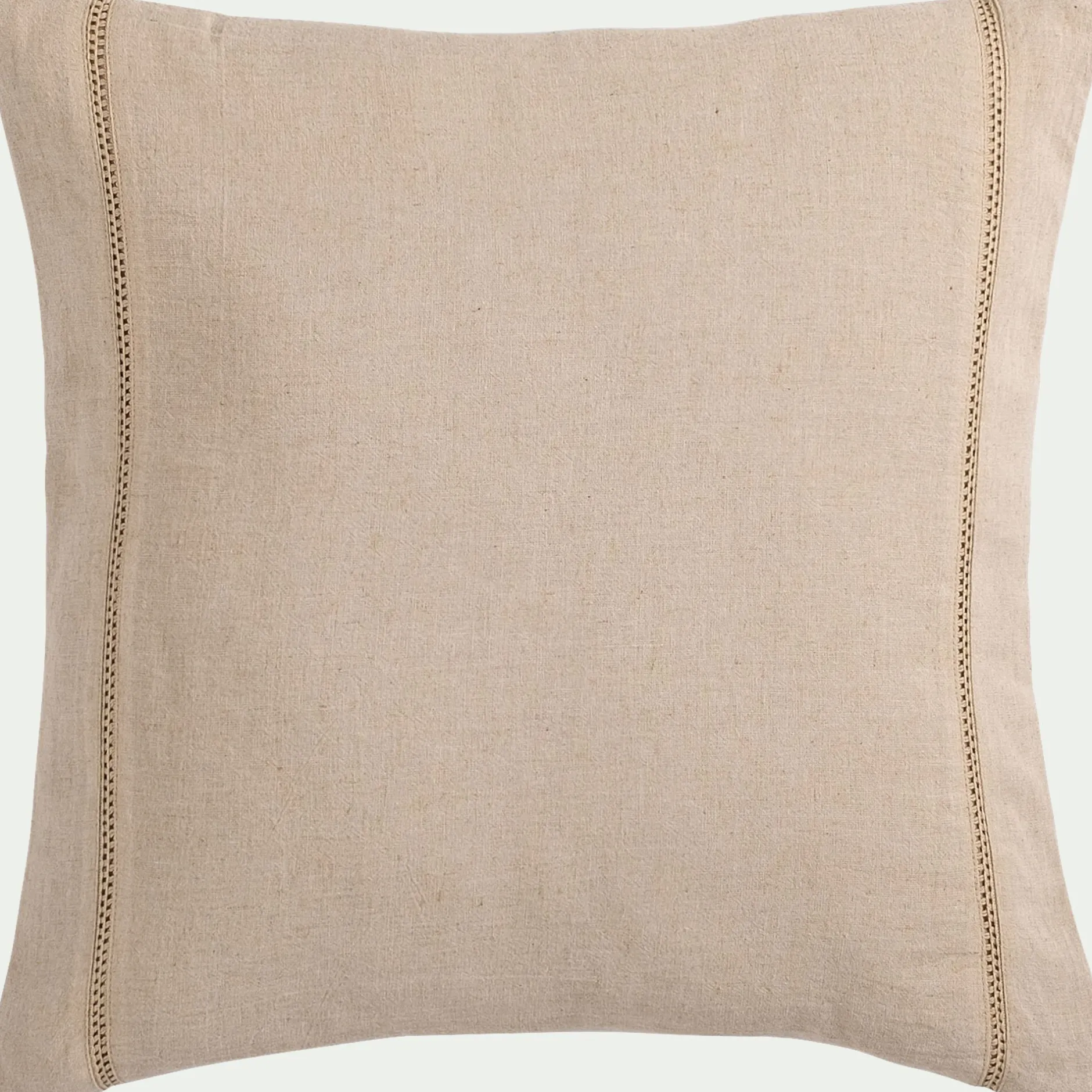 Le coussin déco Lauzon mixe les matières pour un rendu visuel et un toucher optimisés. L’étoffe est souple, douce et arbore cet aspect froissé propre au lin. Cette alliance du lin et du coton donne vie à un coussin élégant qui s’impose comme une touche lumineuse dans le salon. En effet, son coloris naturel attire le regard et participe à un intérieur cocooning. Simple mais unique, ce coussin carré arbore une fine dentelle, cousue ton sur ton, pour un côté aérien très tendance.