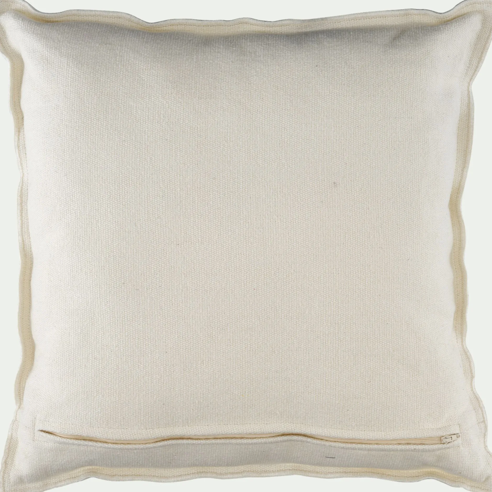 Le coussin Romarin porte le nom d’une plante originaire du bassin méditerranéen. Il tient son nom de son motif réaliste : sur la toile en coton, de fines tiges de romarin tournoient dans un balai vivifiant. Ce motif floral apporte une touche de fraîcheur à ce coussin déco et à l’ensemble de la pièce. Les feuilles vertes accompagnent de petites fleurs bleues, motif délicat et poétique qui inspire la douceur de vivre. Ce coussin en coton présente également une finition en point de bourdon, une broderie élégante qui souligne le contour.